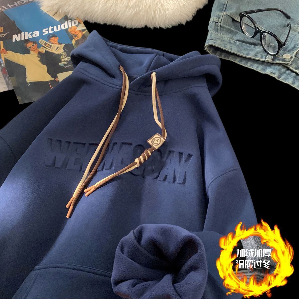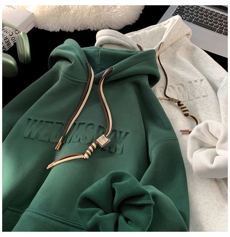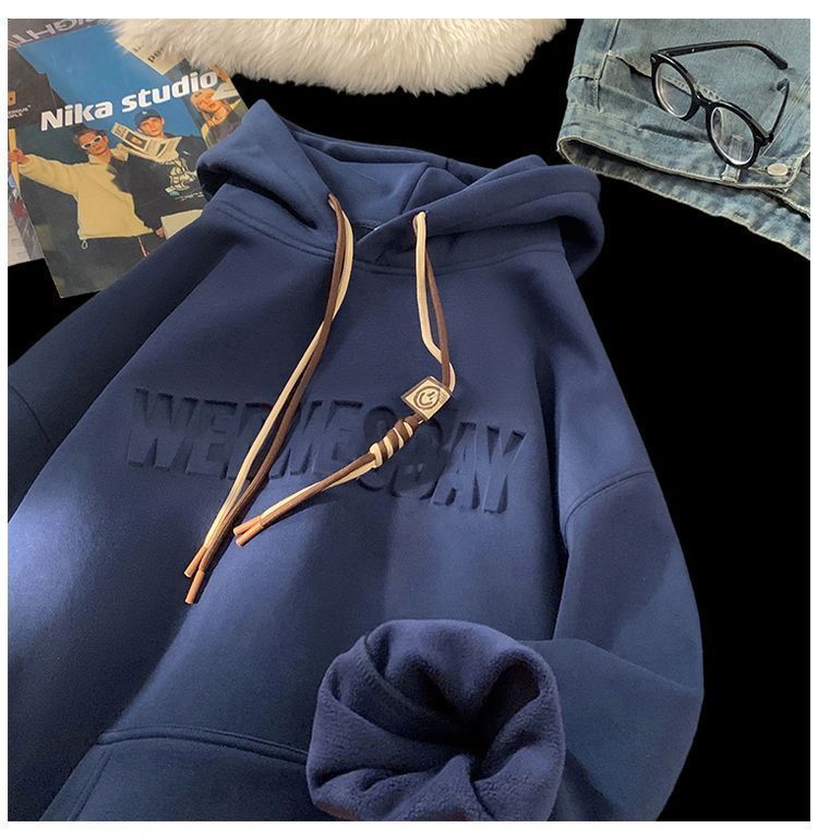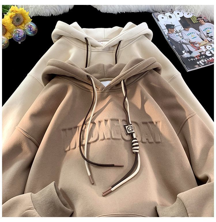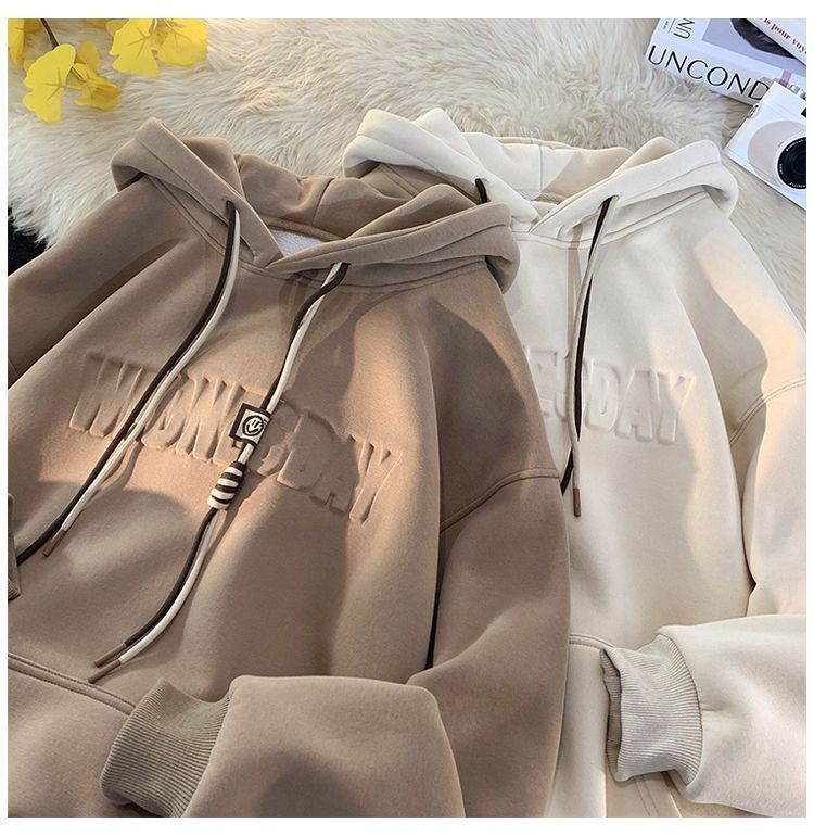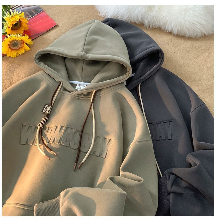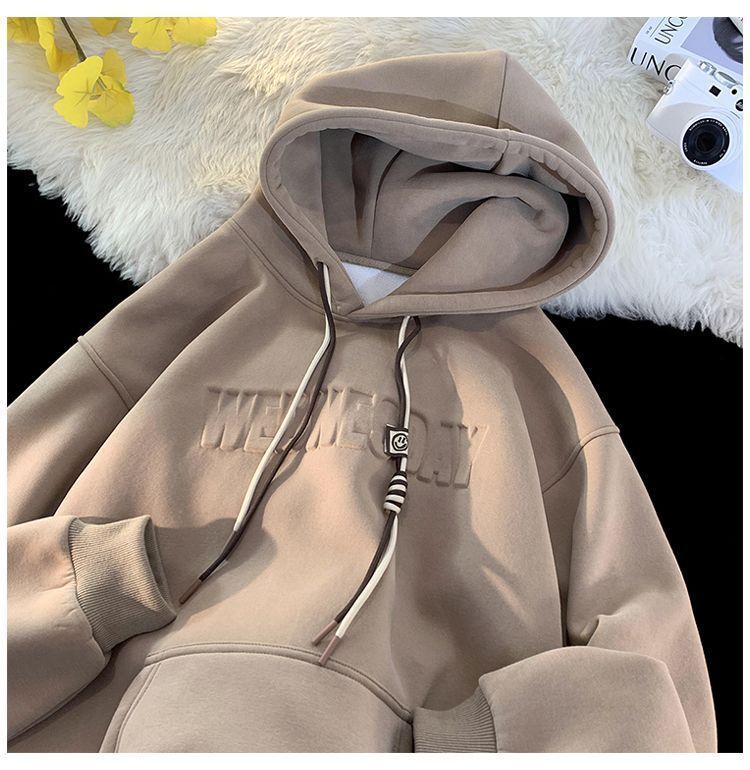 CanelinKiskha美式重磅连帽卫衣男女春秋款潮牌字母钢印宽松上衣