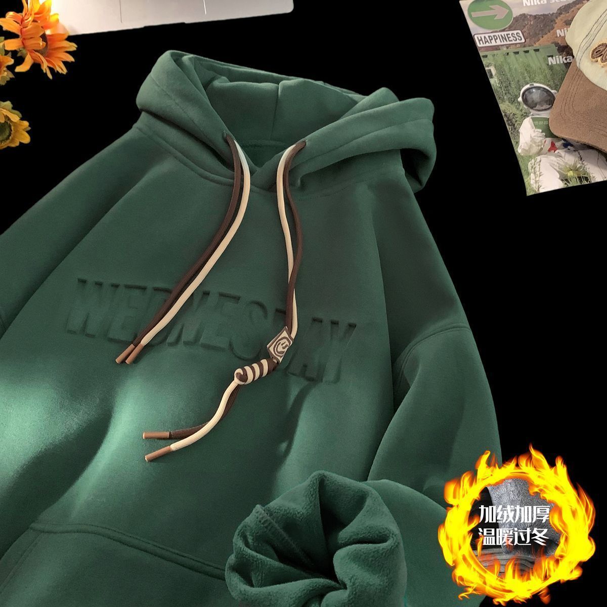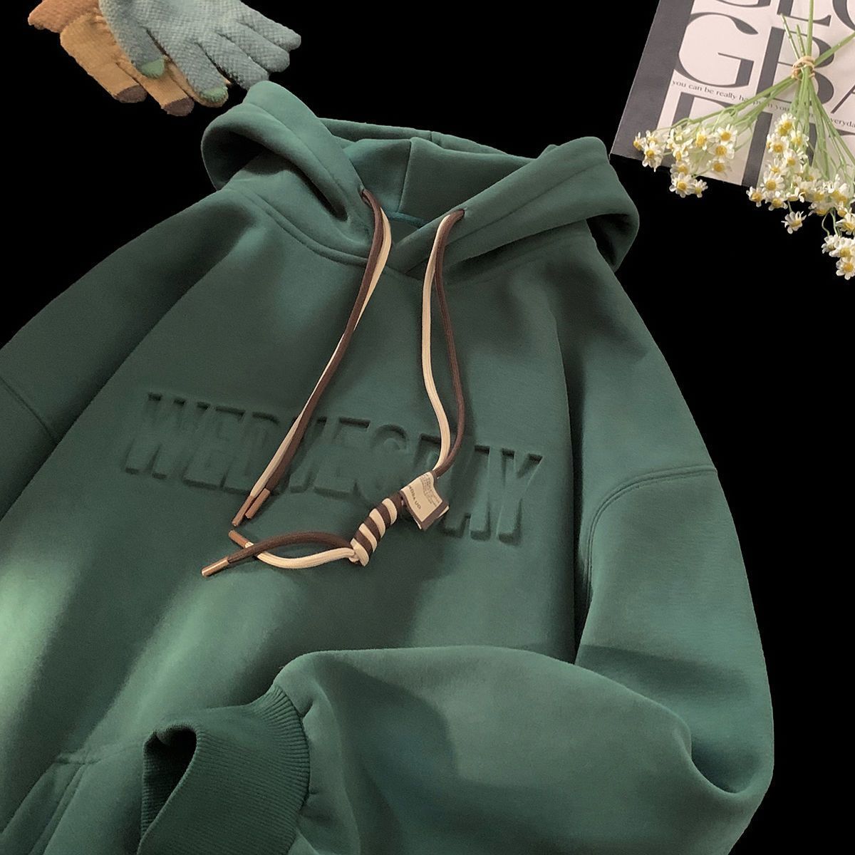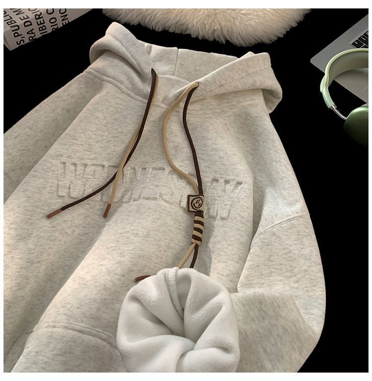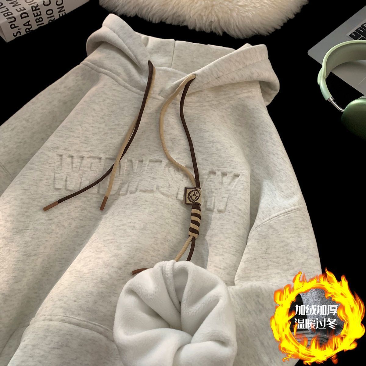 CanelinKiskha美式重磅连帽卫衣男女春秋款潮牌字母钢印宽松上衣