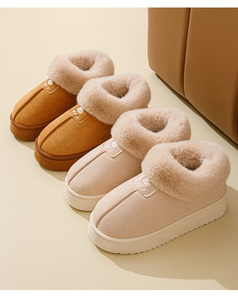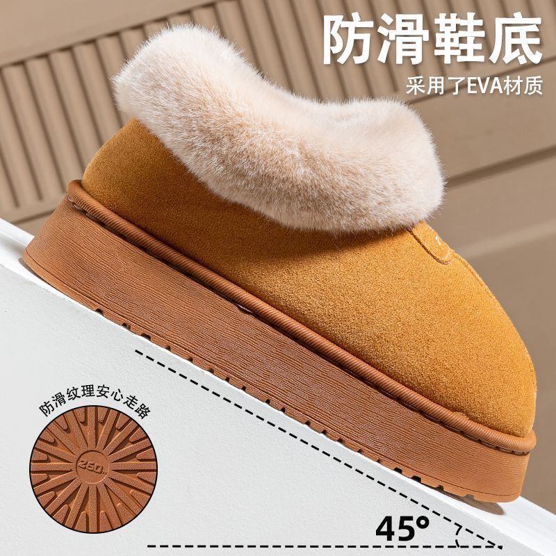 包跟棉拖鞋女冬季时尚厚底家居室内麂皮绒防滑超暖棉鞋男士外穿冬