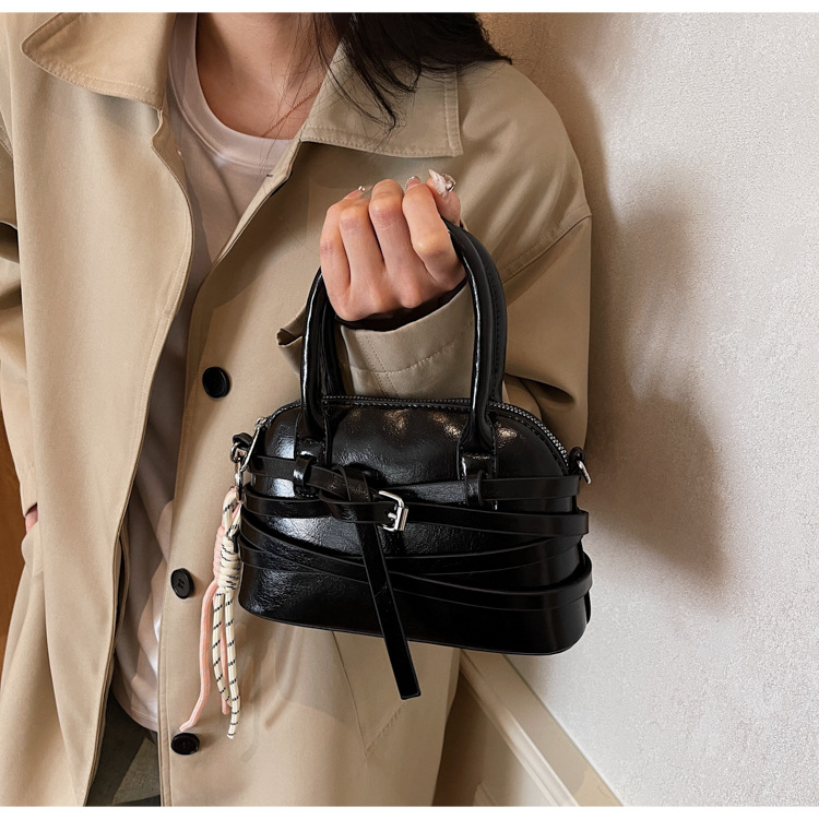 秋冬手提红色包包女2024新款时尚贝壳包简约百搭单肩斜挎通勤包