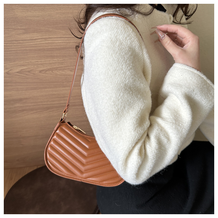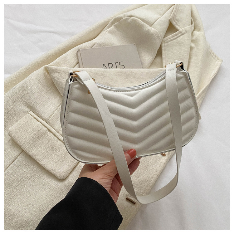 个性潮流菱格压花腋下包女包新款时尚单肩手提腋下包法棍饺子包女