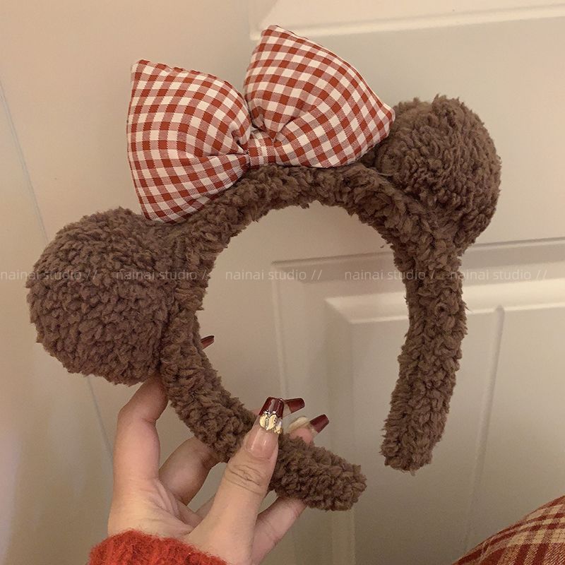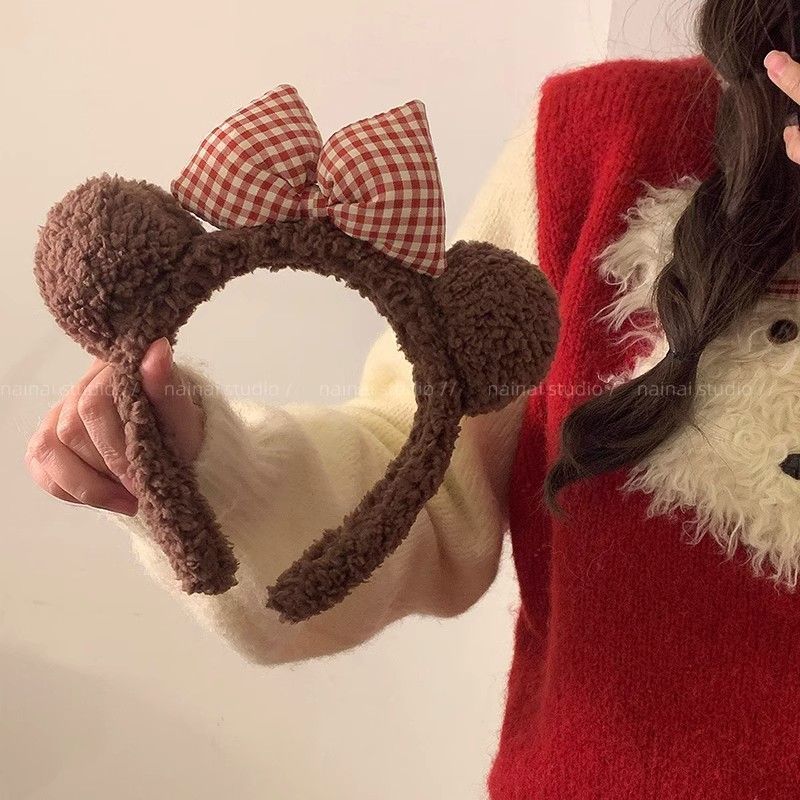 可爱蝴蝶结小熊耳朵发箍~洗脸束发带发卡红色卡通毛绒头箍发饰冬