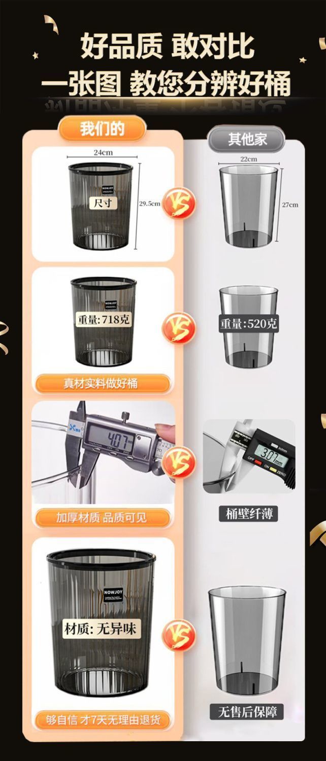 垃圾桶家用透明轻奢客厅大号卧室厨房卫生间办公室纸篓亚克力花桶