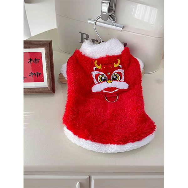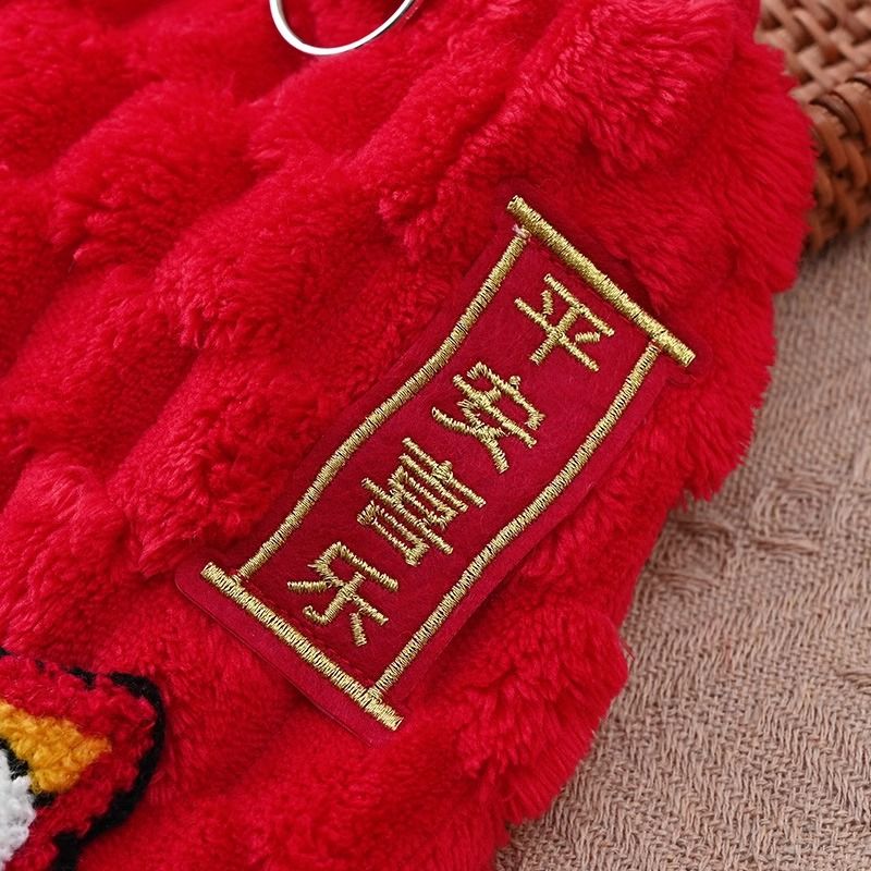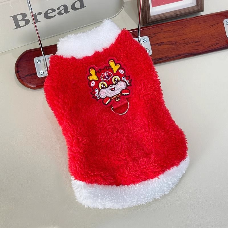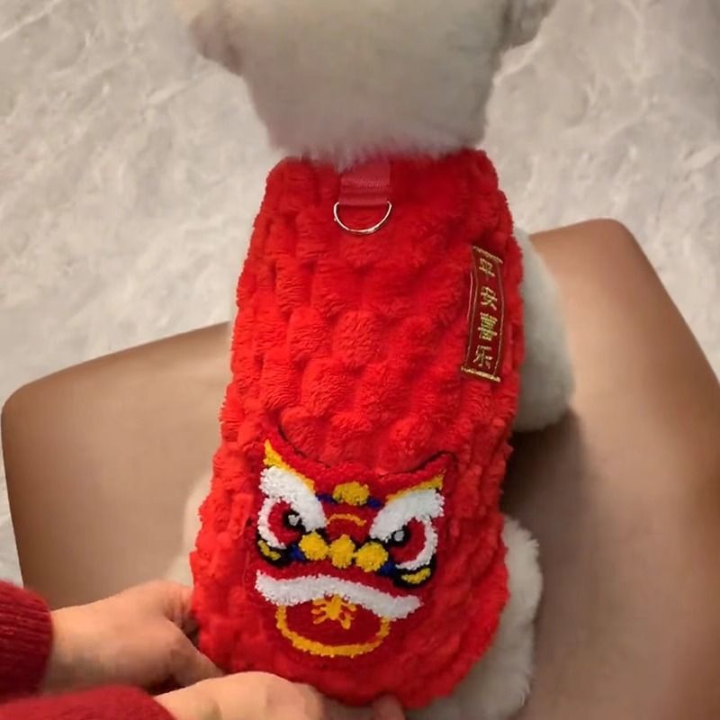 狗狗衣服新年醒狮加绒加厚背心中小型犬泰迪比熊博美可牵引两脚衣