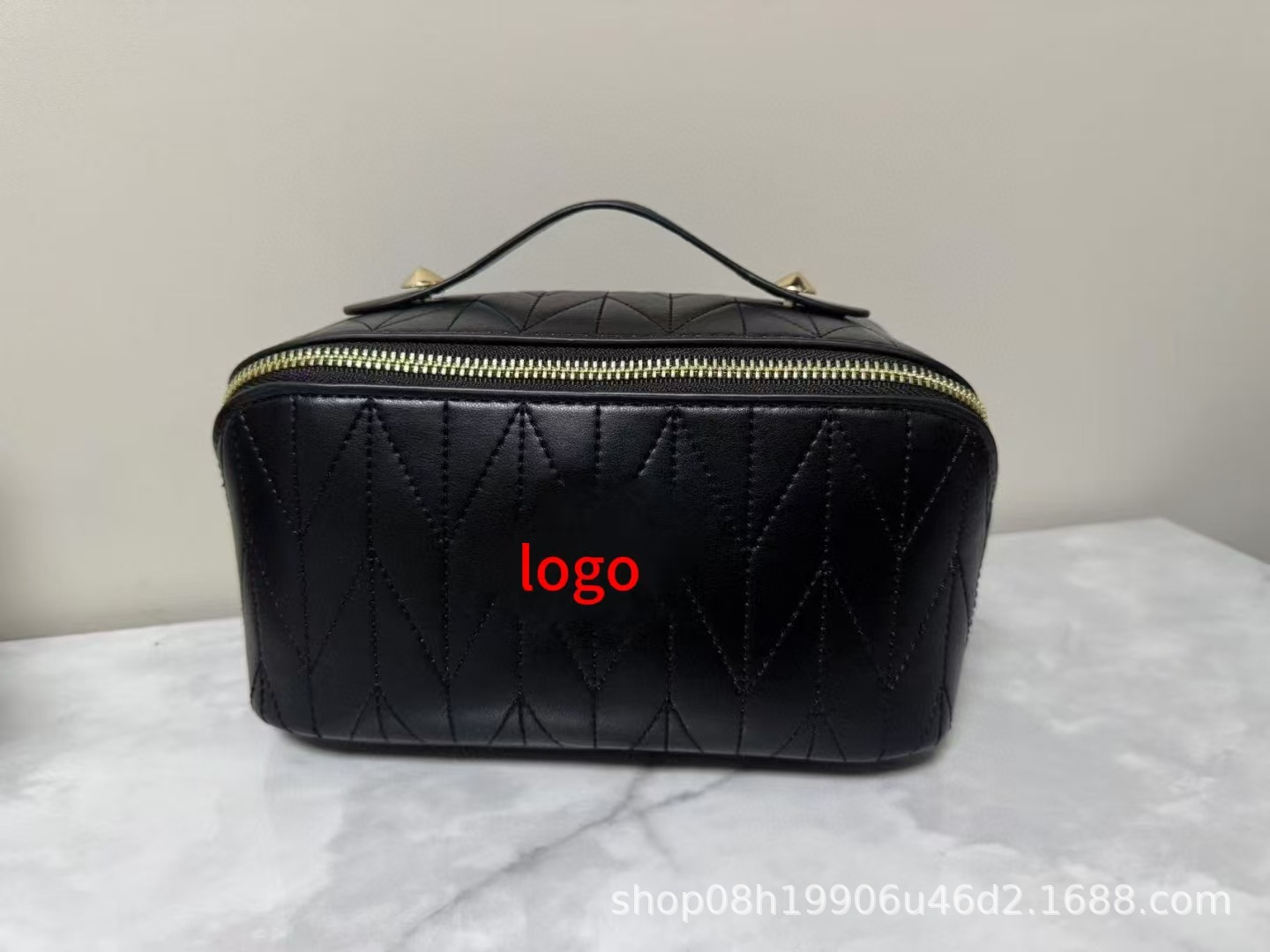 新款大容量高级感时尚化妆包便携式绣线手提包旅行化妆品收纳包袋