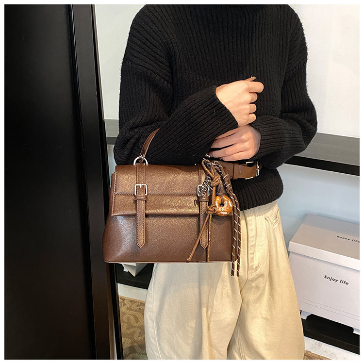 小众通勤手提包女包2024新款学院风复古邮差包简约单肩斜挎小方包