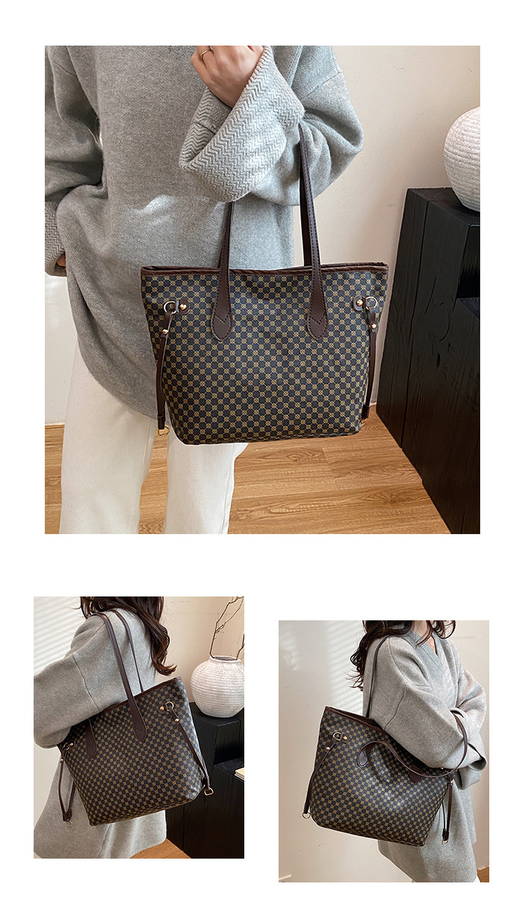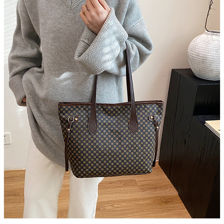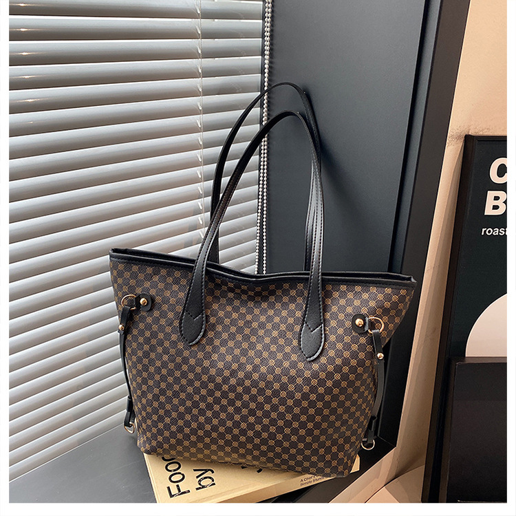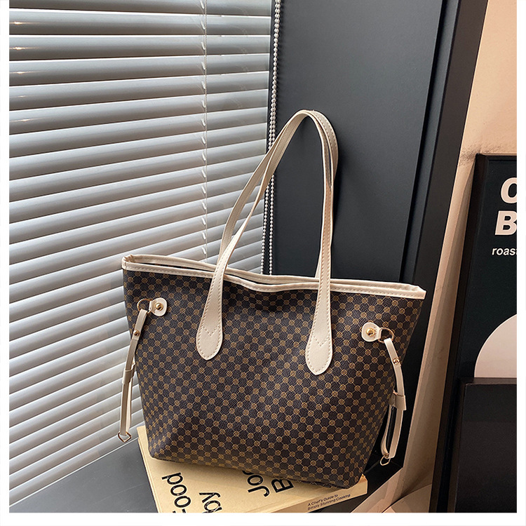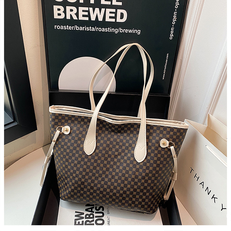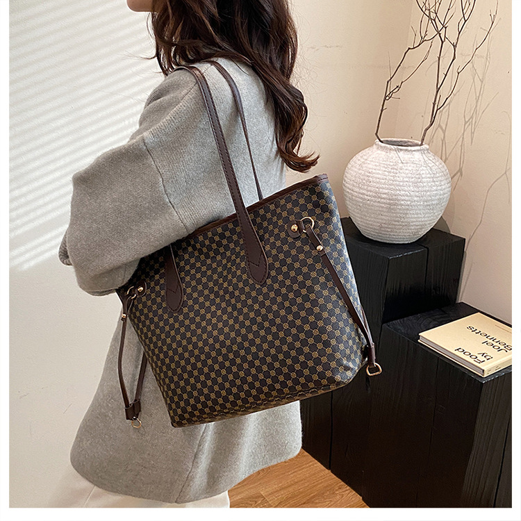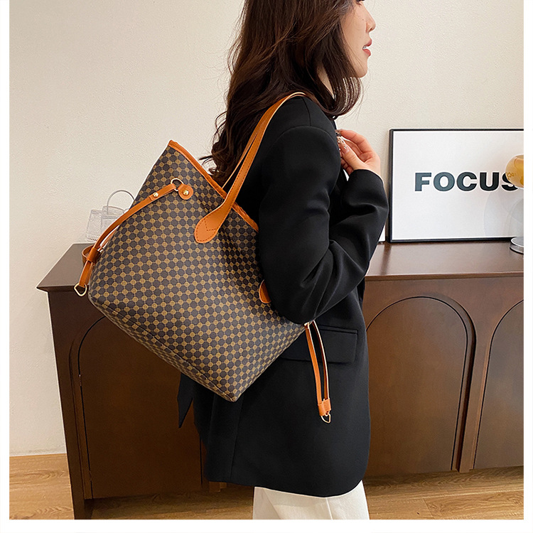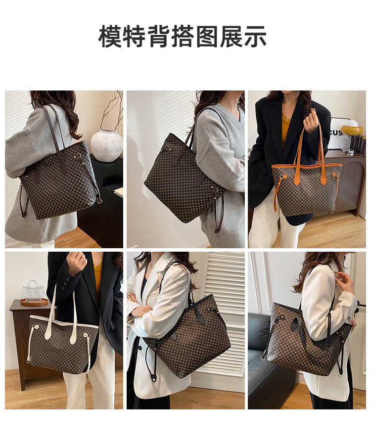 复古托特包2024新款印花包大容量妈咪包撞色拼接单肩包女士手提包