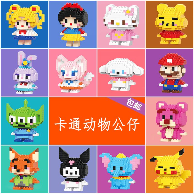 可爱卡通公仔积木迪士尼系列桌面摆件儿童益智力手工拼装玩具礼物