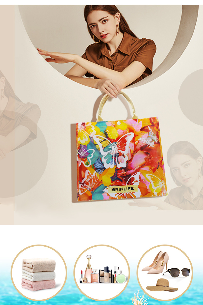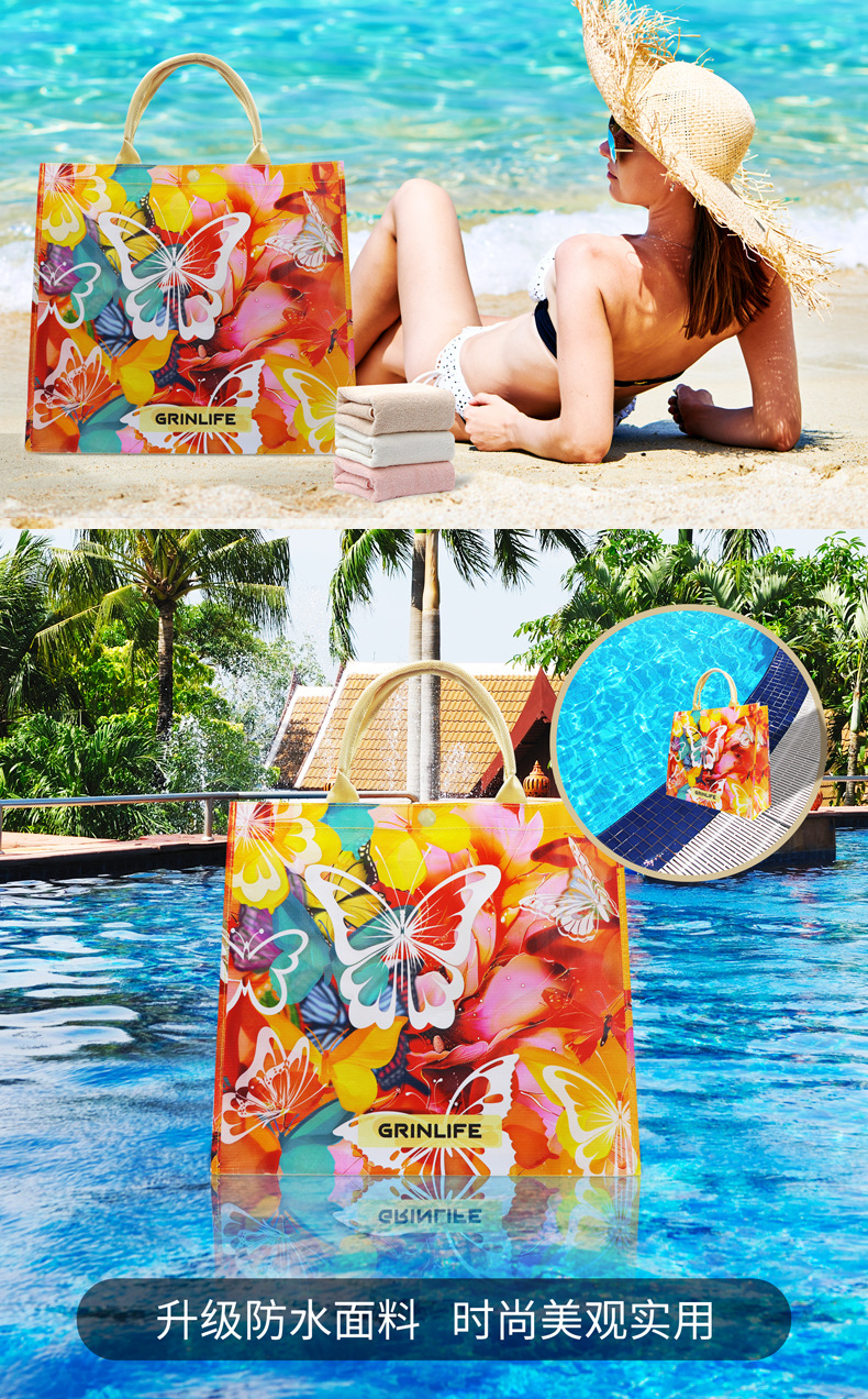 新款现货环保手提托特包印花防水沙滩出行大容量单肩女士托特包