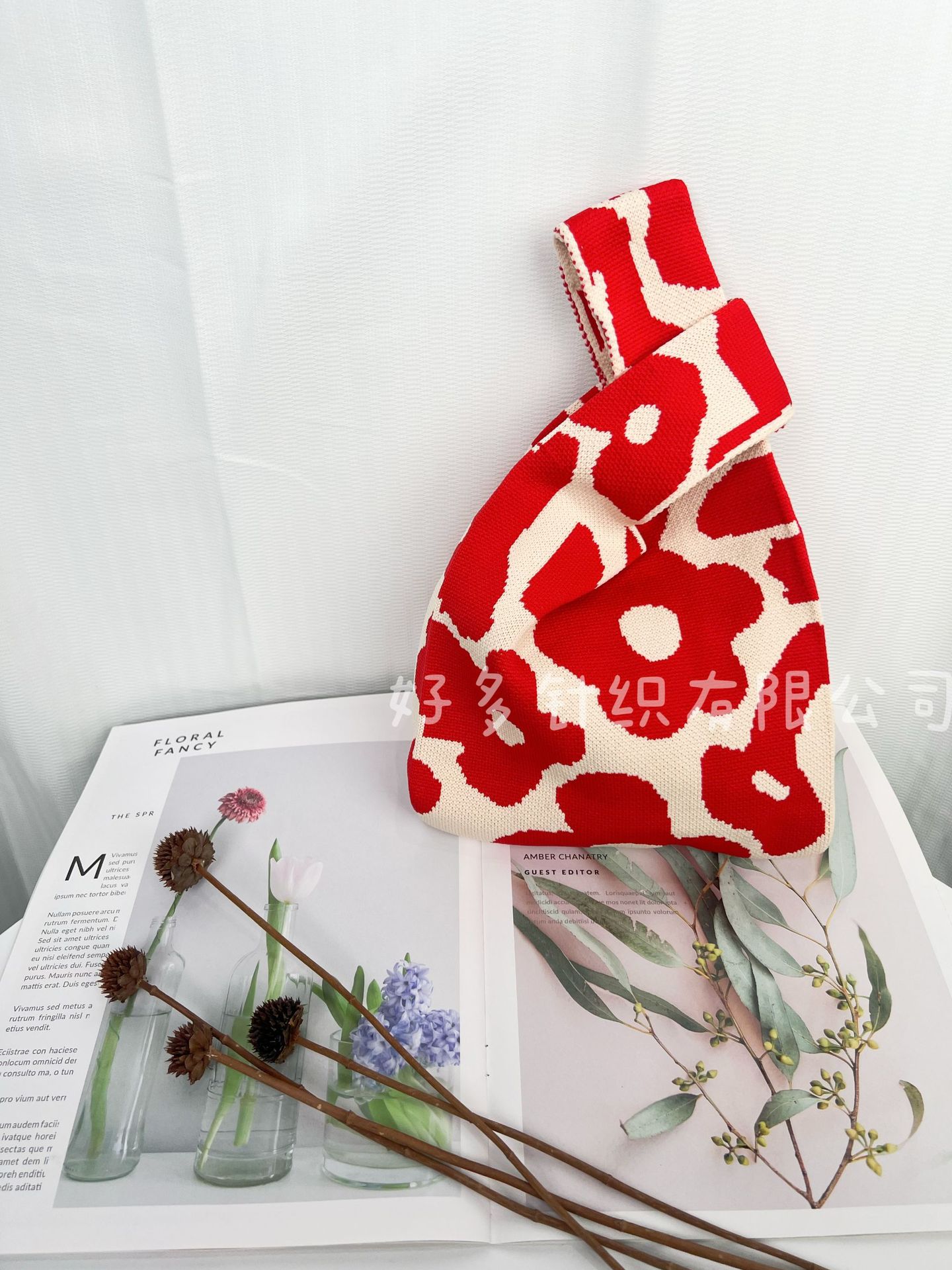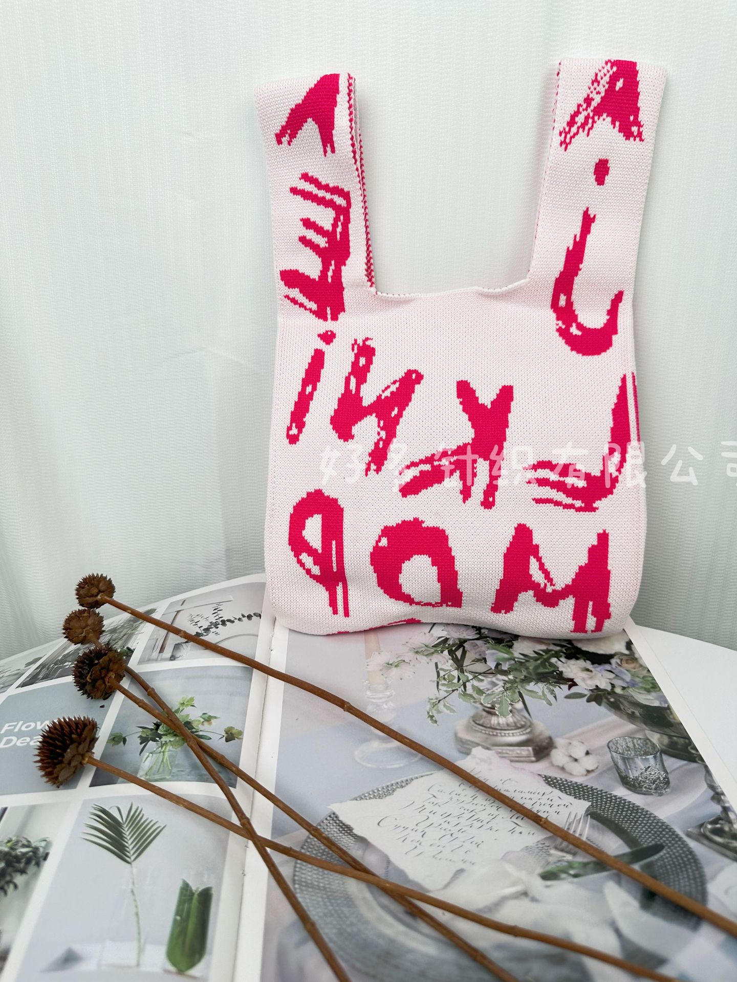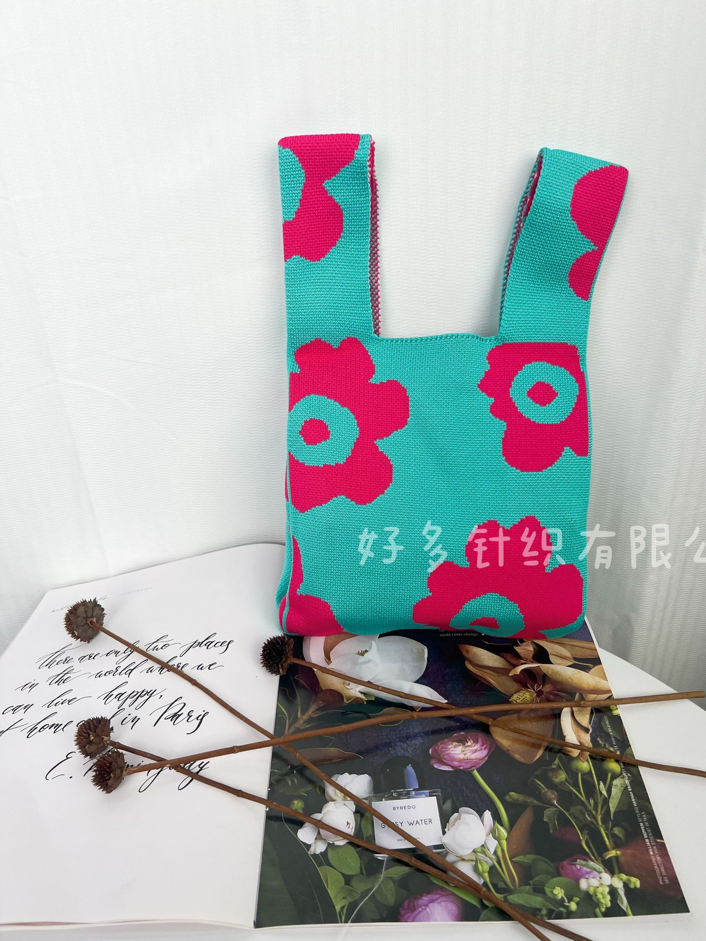 新款飞织包手提包女针织毛线水桶包日韩百搭手拎休闲托特包盒饭袋