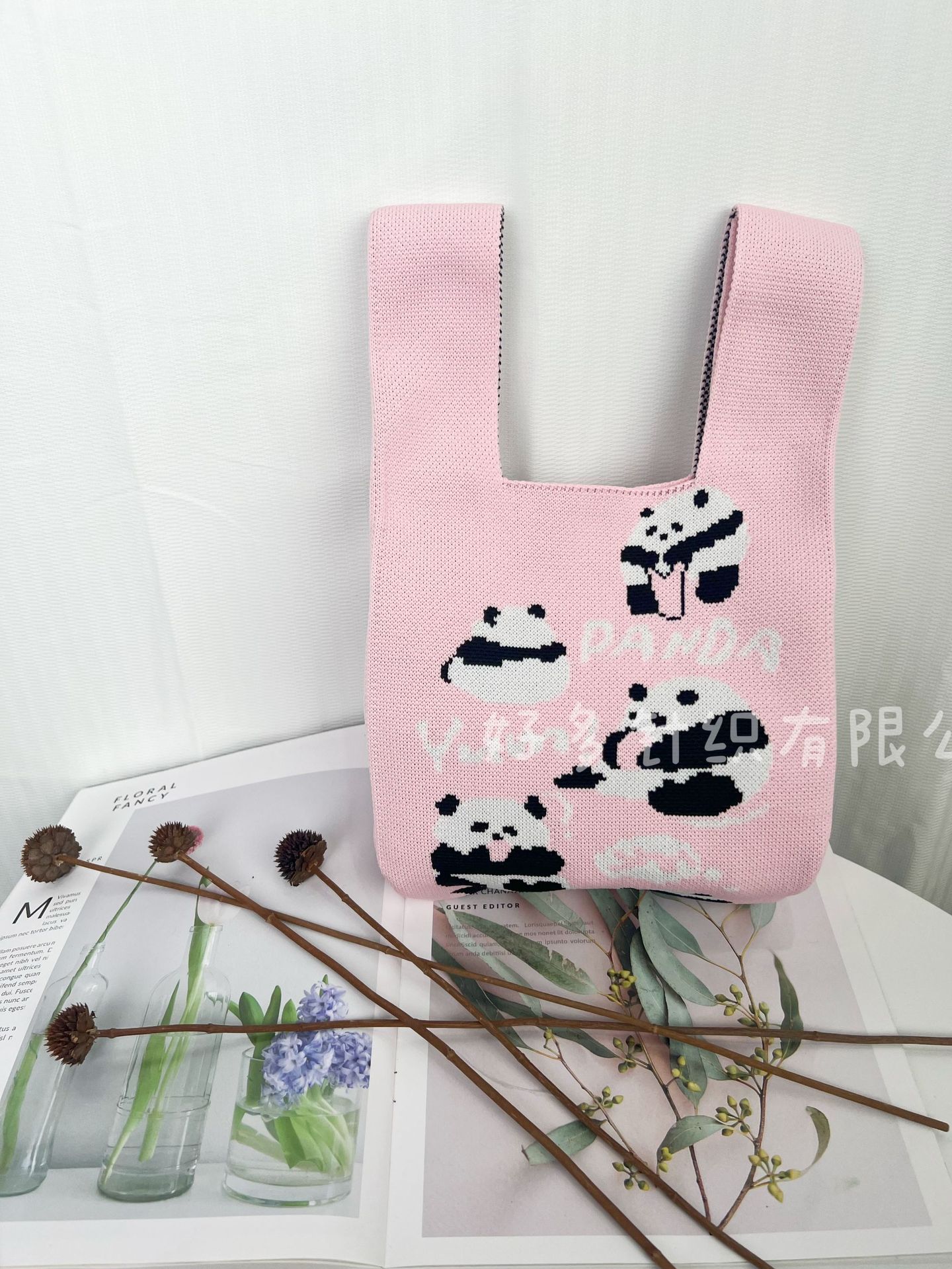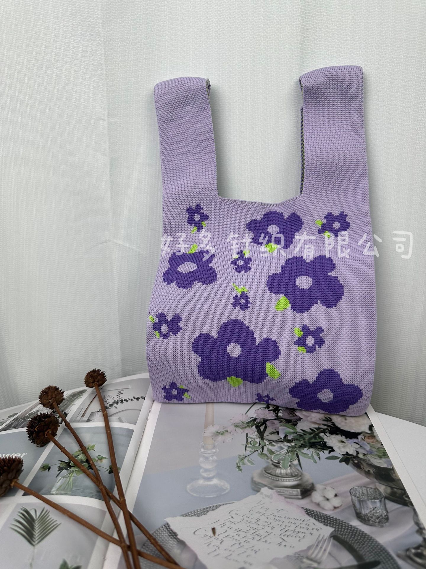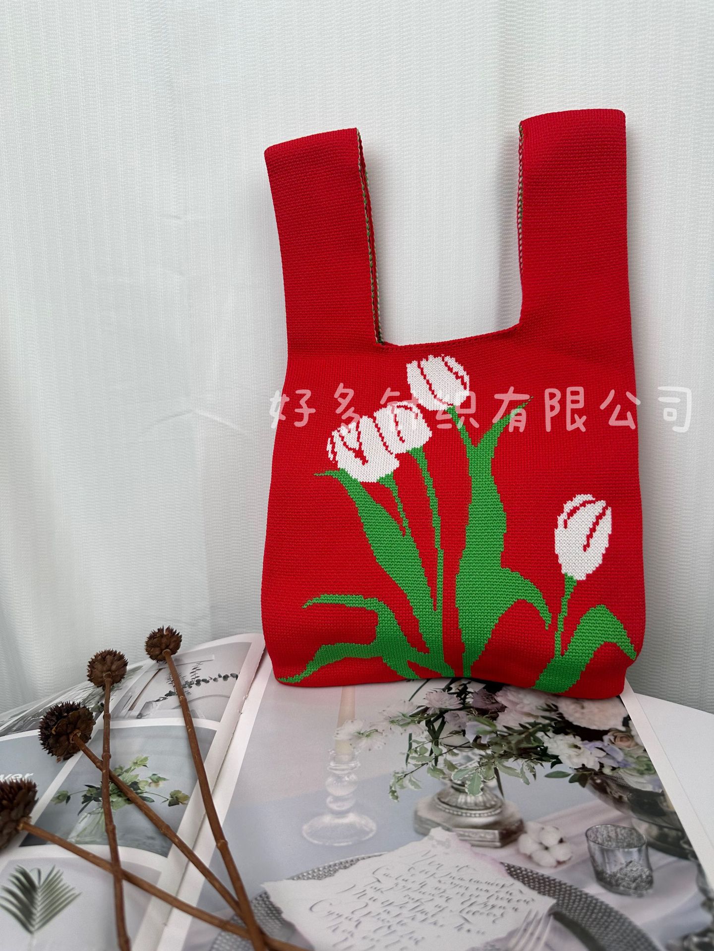 新款飞织包手提包女针织毛线水桶包日韩百搭手拎休闲托特包盒饭袋