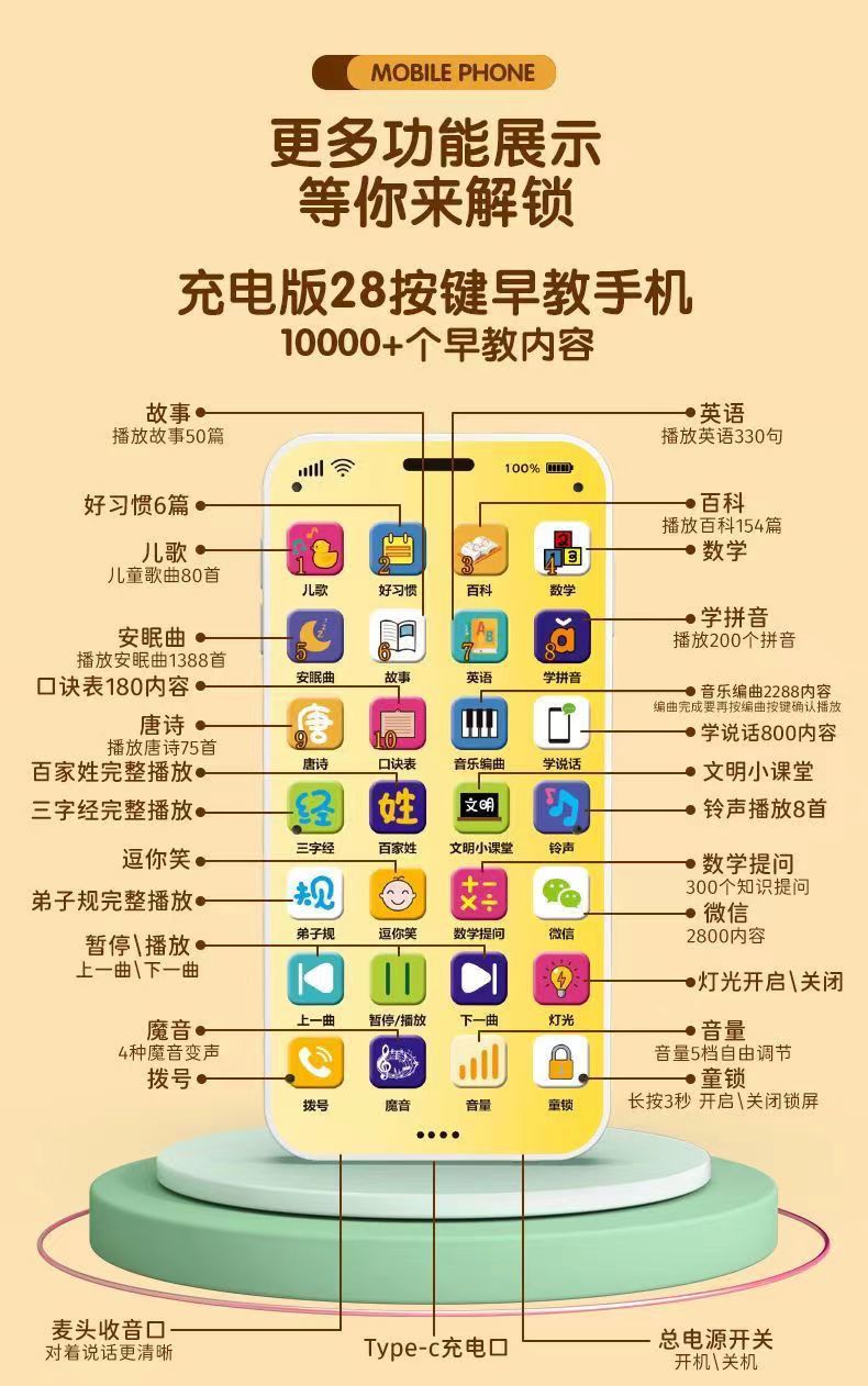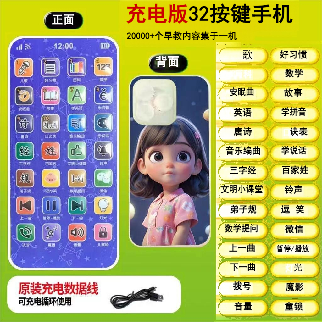 儿童早教益智手机婴儿多功能学习机早教音乐仿真电话机男女孩玩具