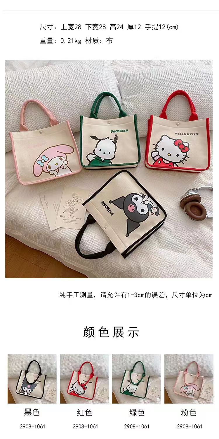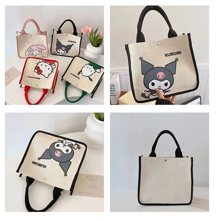 可爱帆布包手提袋大容量手拎通勤饭盒包洗漱包女包新款卡通小清新