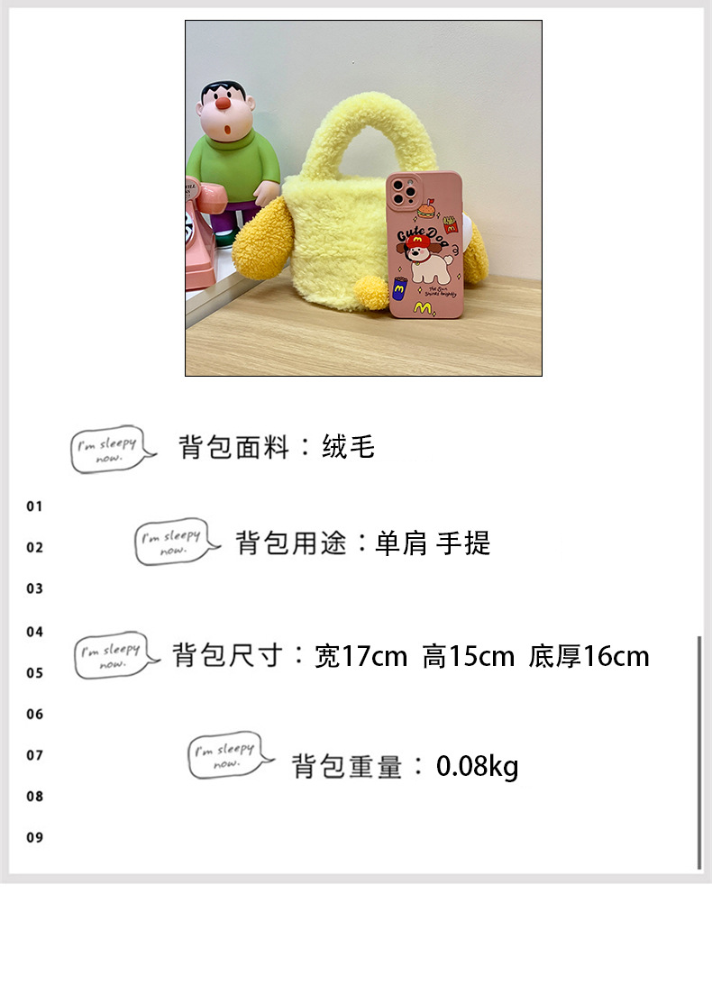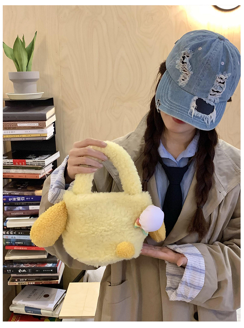 可爱饼饼毛绒手提包新款个性女生节日礼物卡通玩偶手提小包手机包