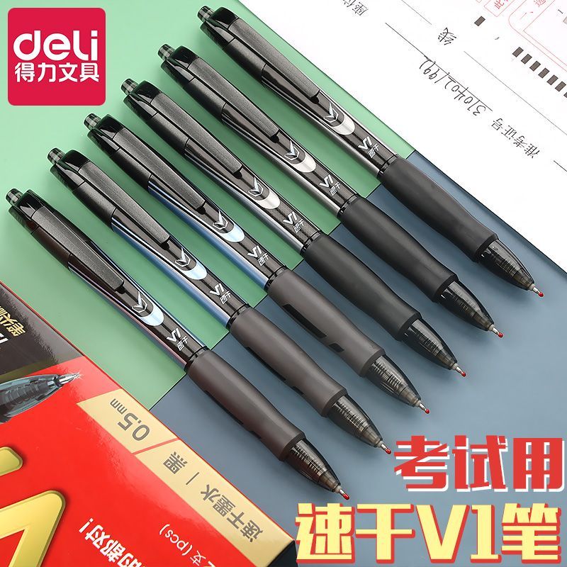得力V1连中三元考试笔学生刷题笔速干碳素笔按动中性笔黑色水笔
