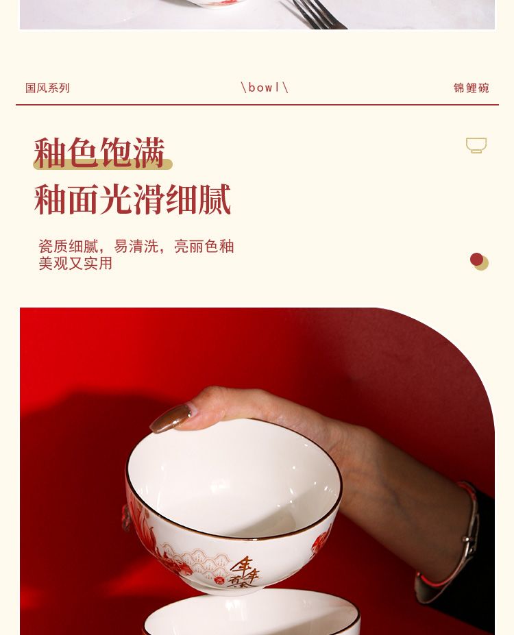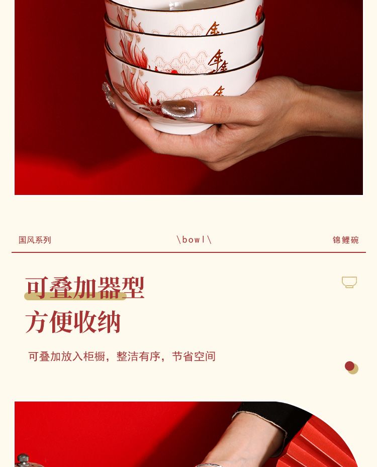 釉下彩陶瓷碗套装饭碗家用吃饭高颜值加厚米饭碗实用餐具碗具套碗