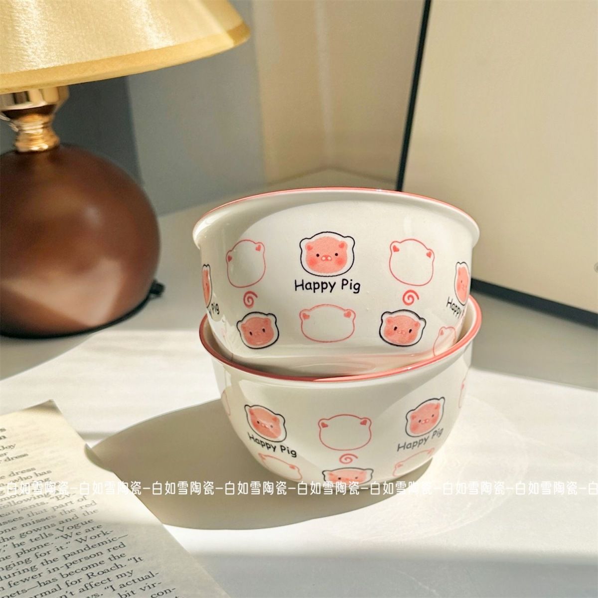 陶瓷釉下彩happy陶瓷ins下彩家用高颜值餐具可爱釉下彩少女饭碗