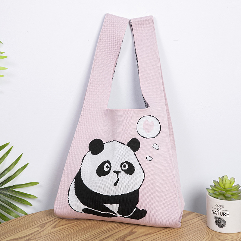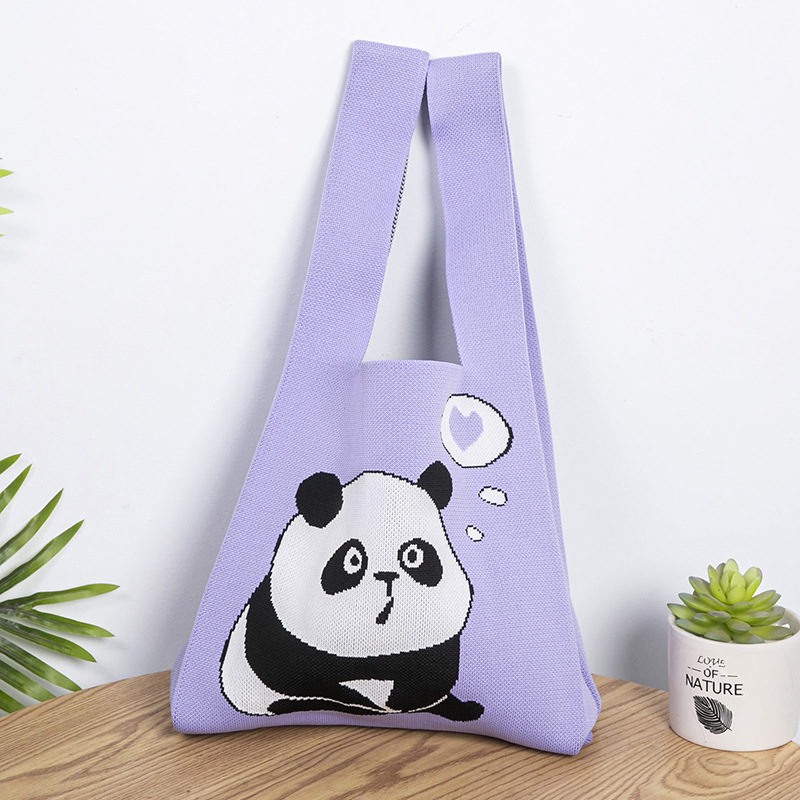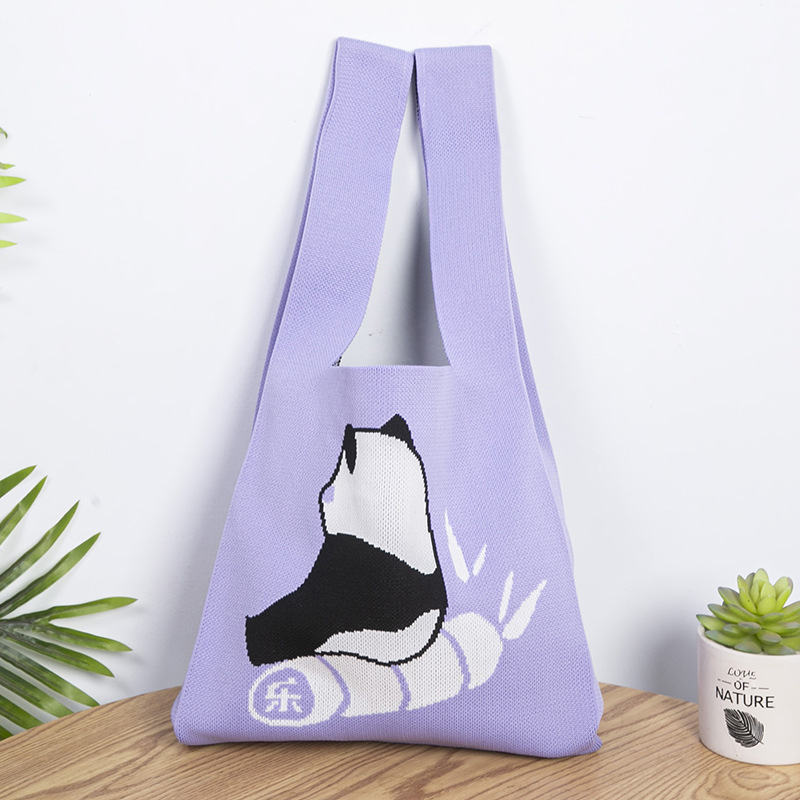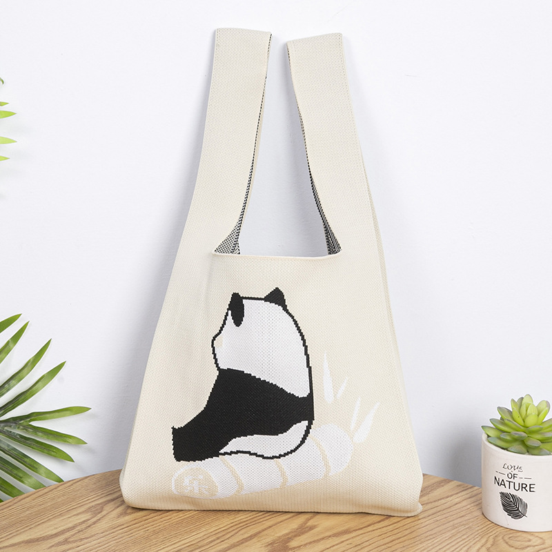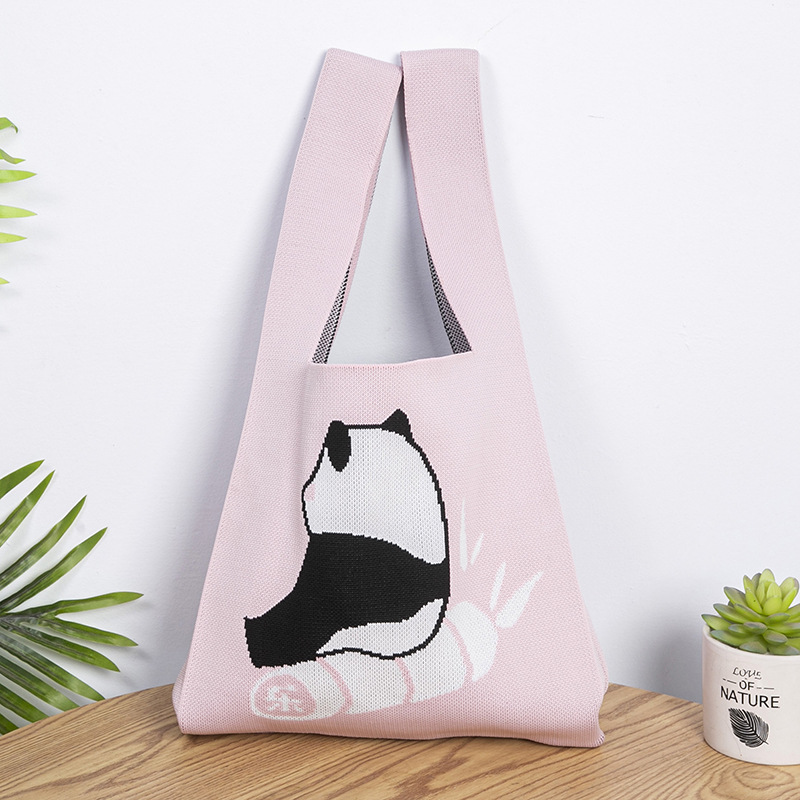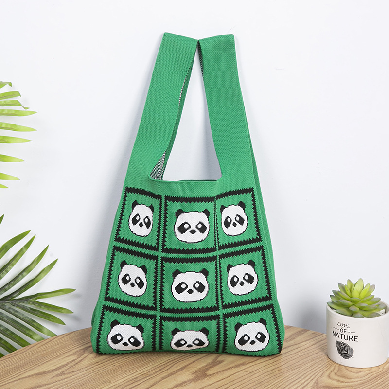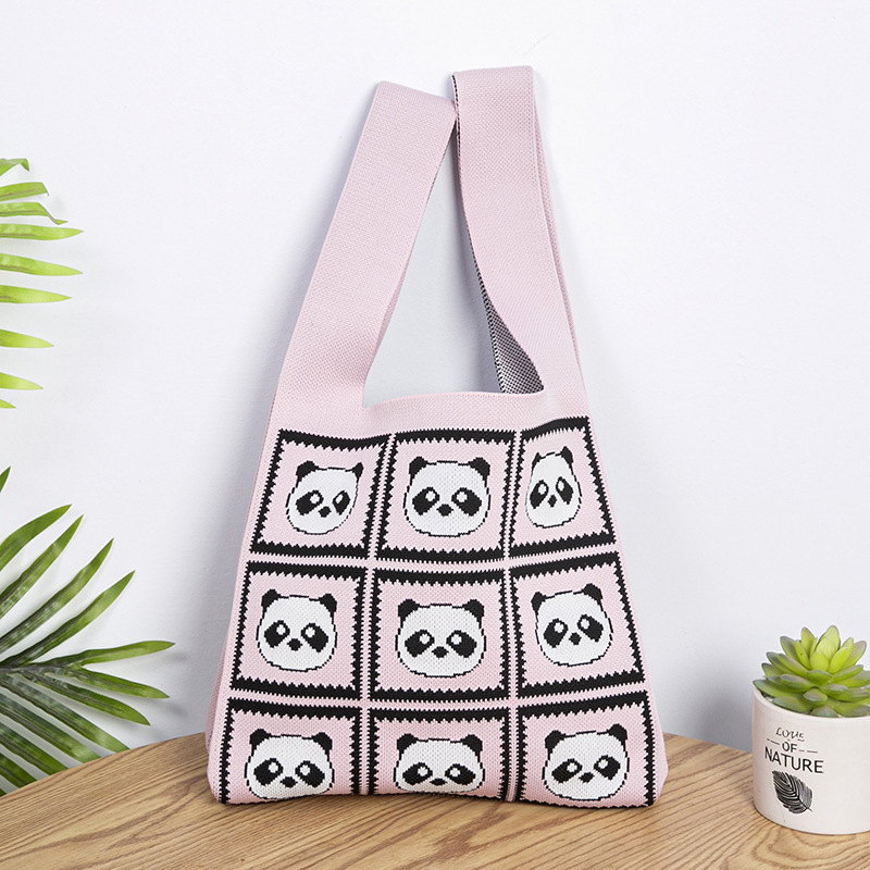 成都爷爷同款熊猫针织亲子手提包女士编织手拎包水桶包新年伴手礼