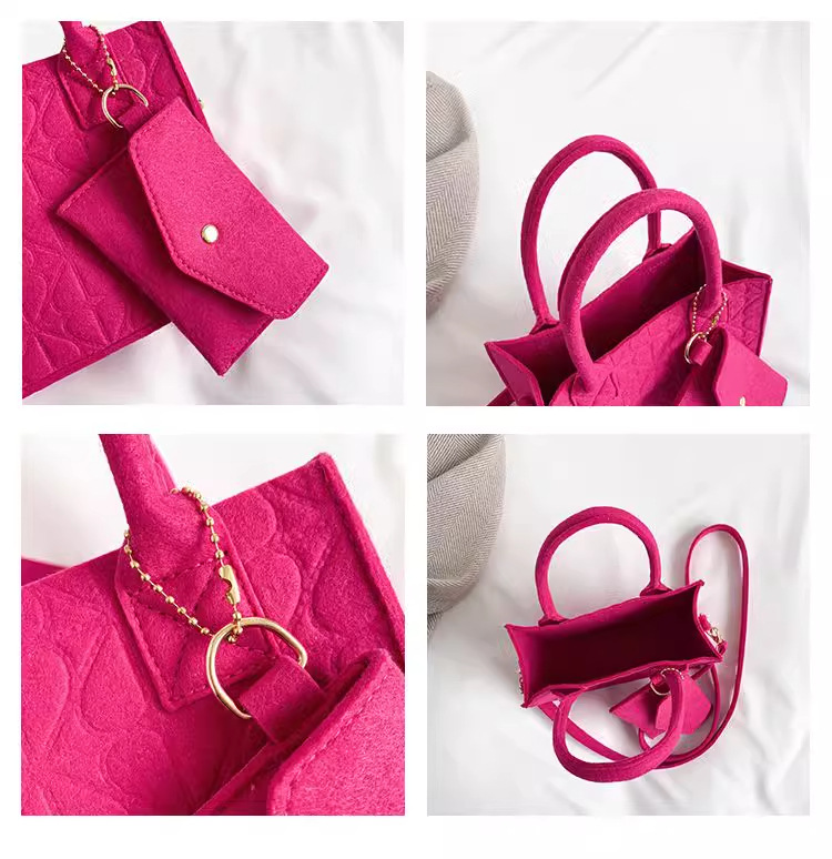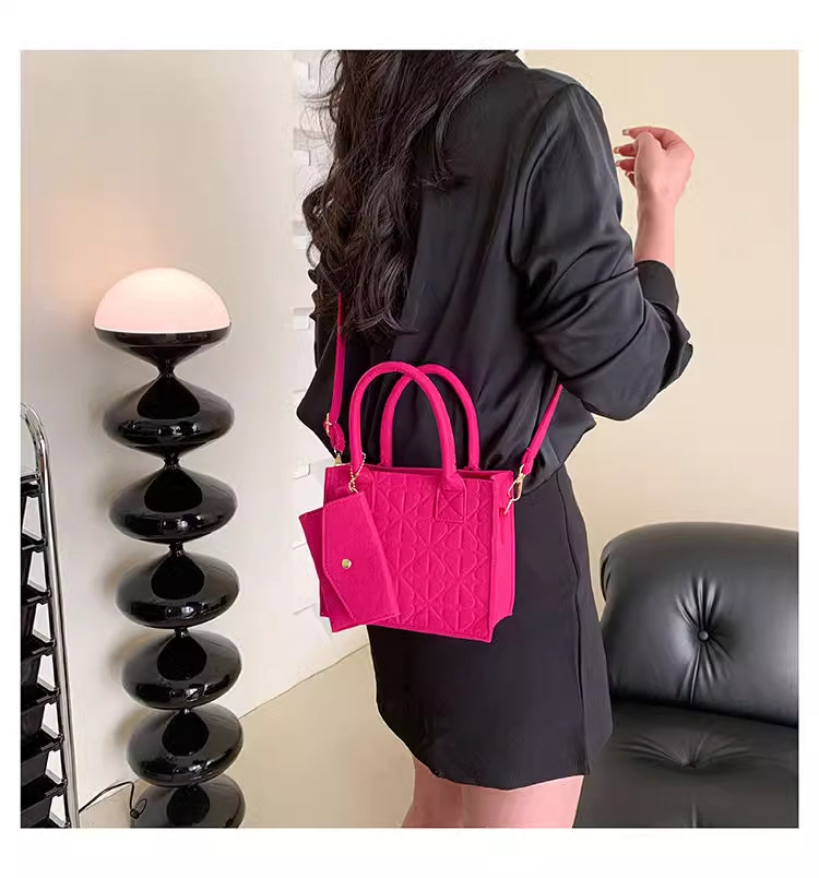 2024秋季新款小众质感简约百搭手提小包女时尚流行毛毡单肩子母包