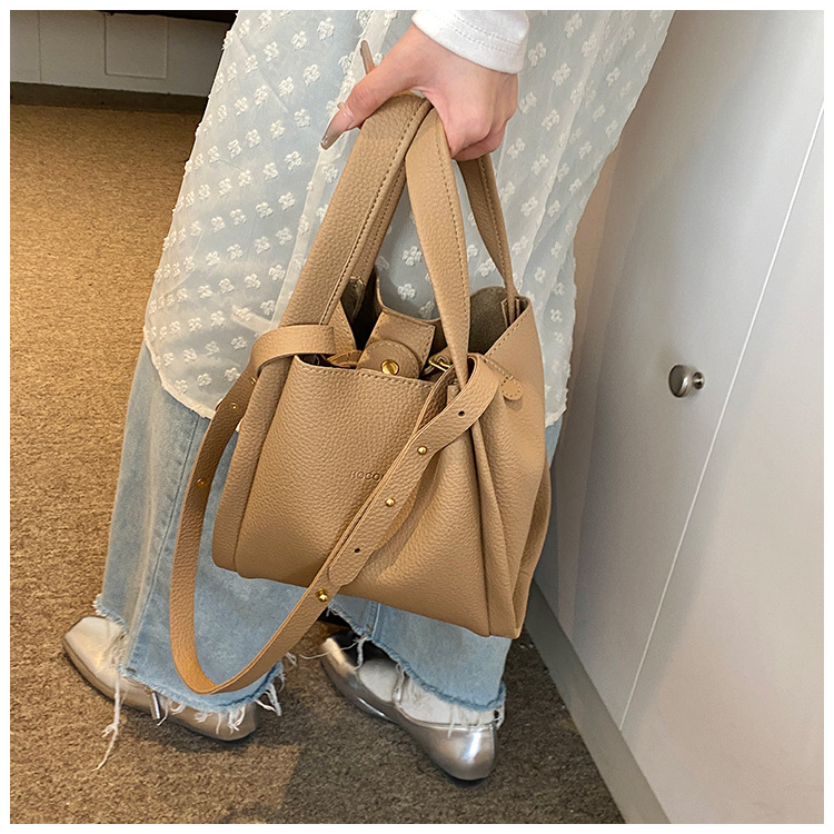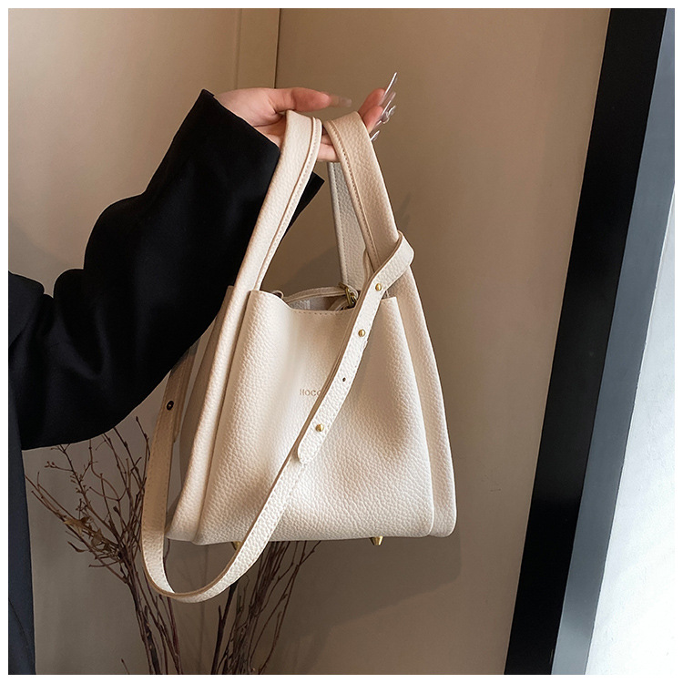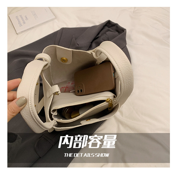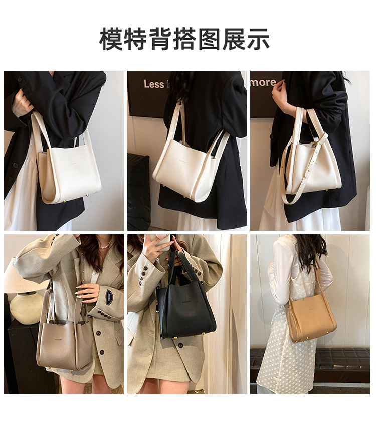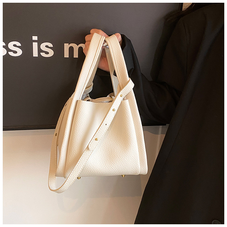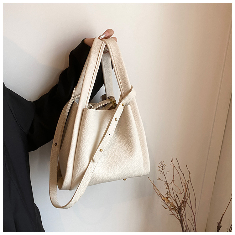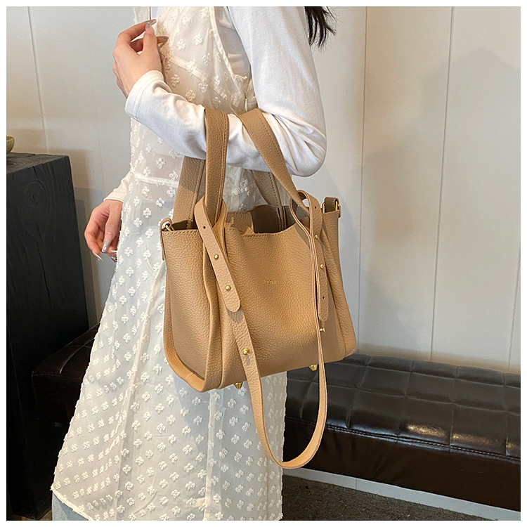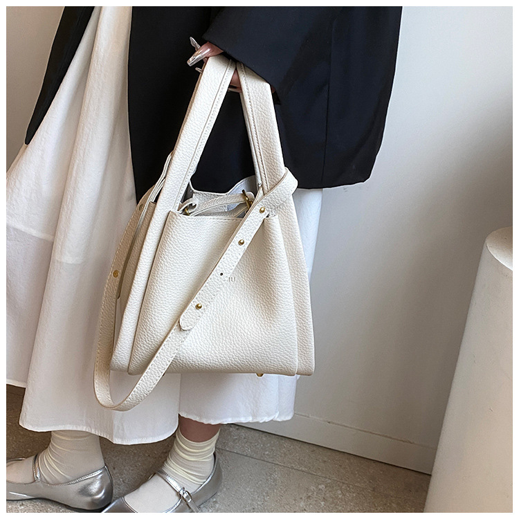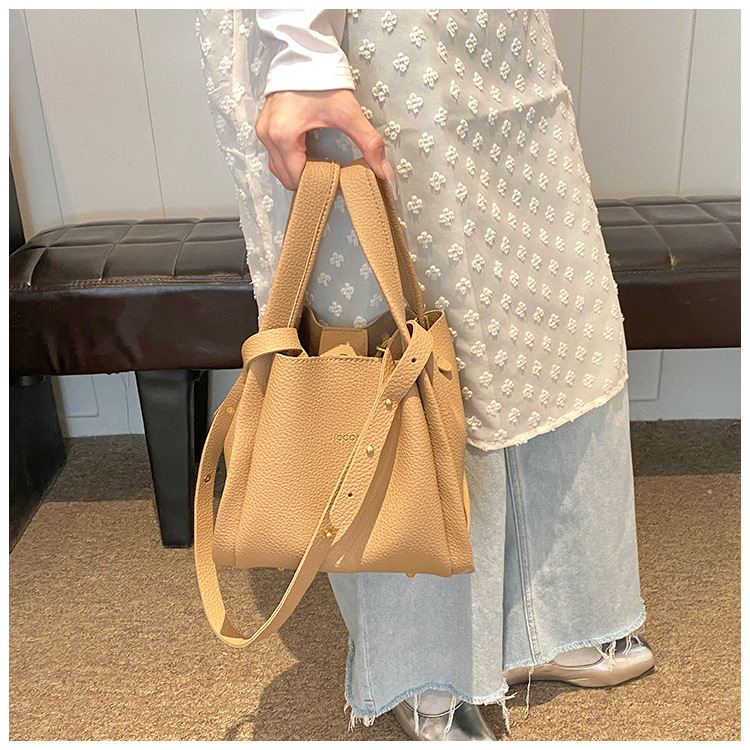 荔枝纹水桶包2024新款女包简约夏季单肩包手提菜篮子包子母两件套