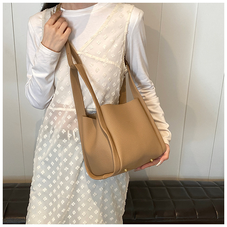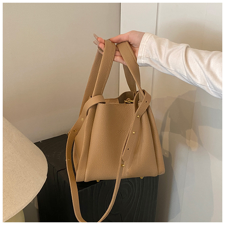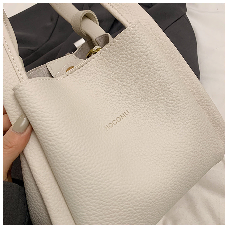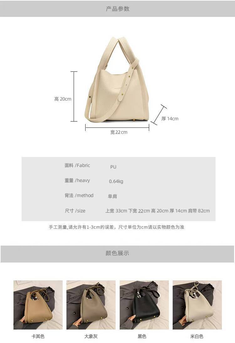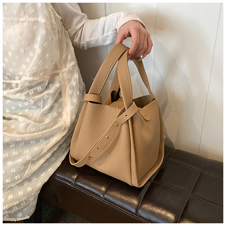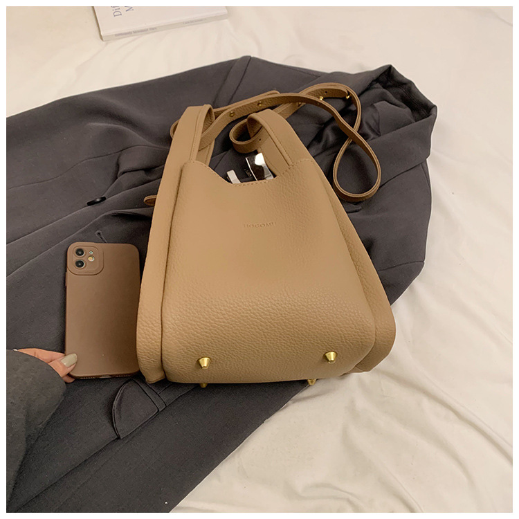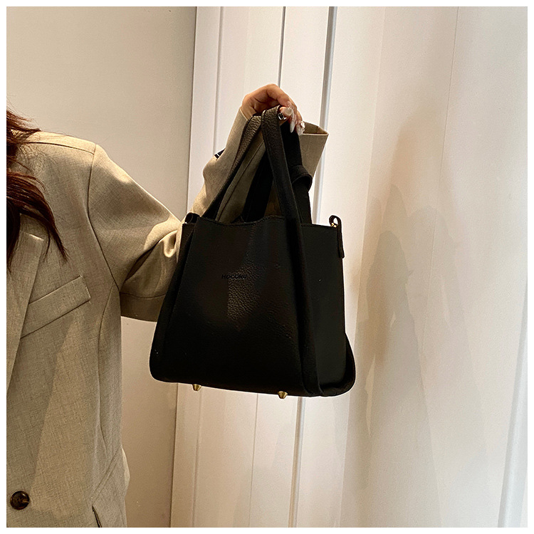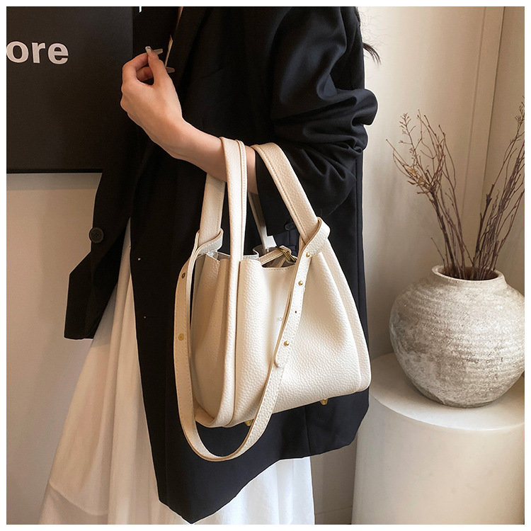 荔枝纹水桶包2024新款女包简约夏季单肩包手提菜篮子包子母两件套