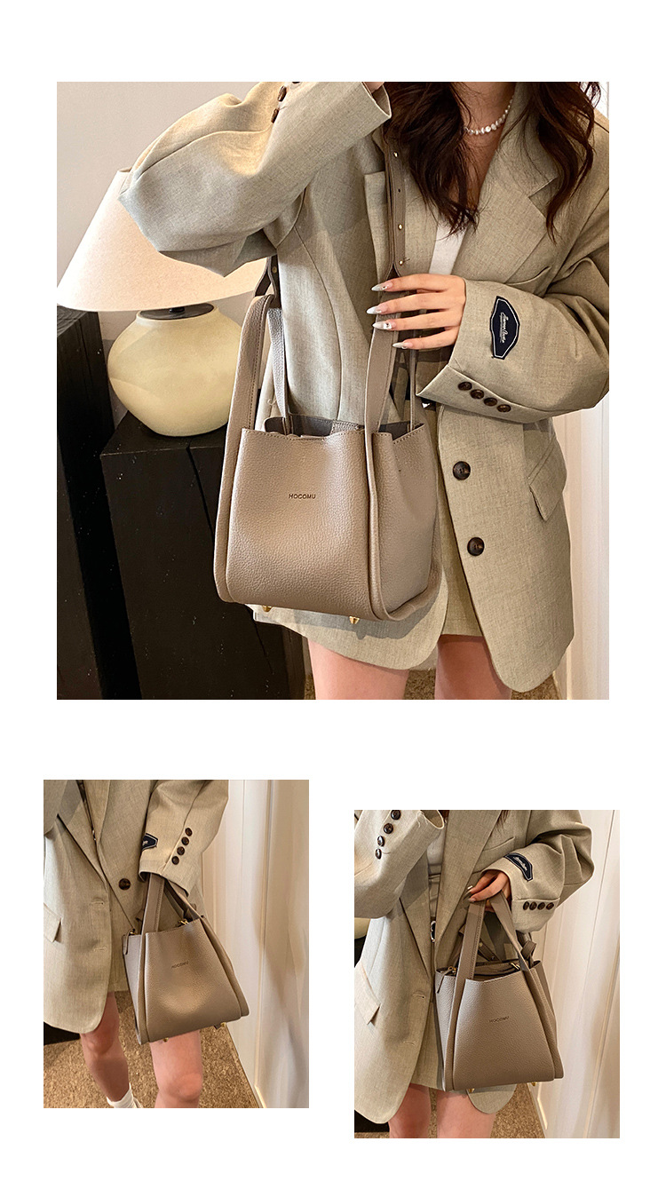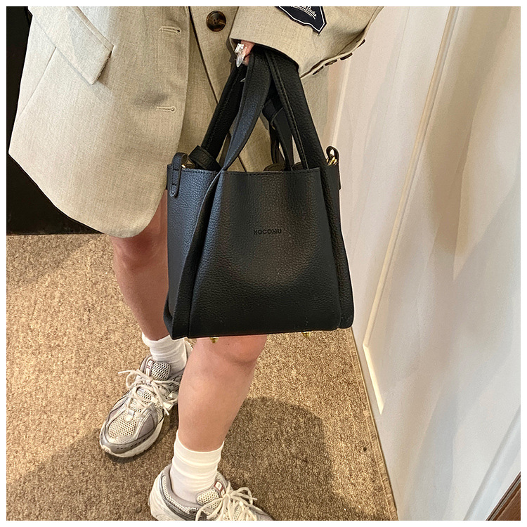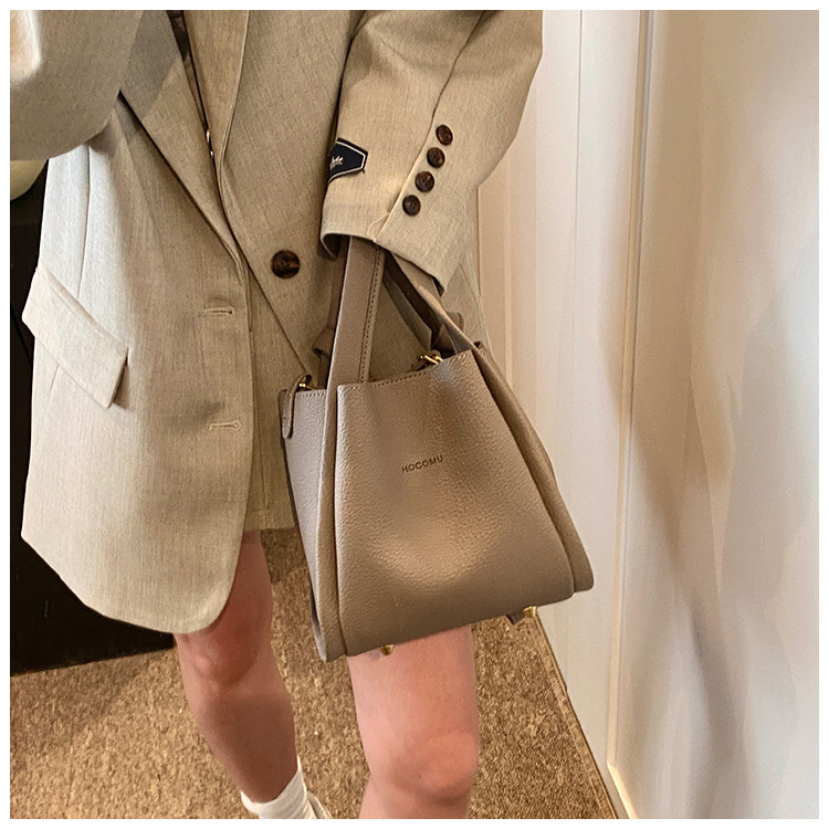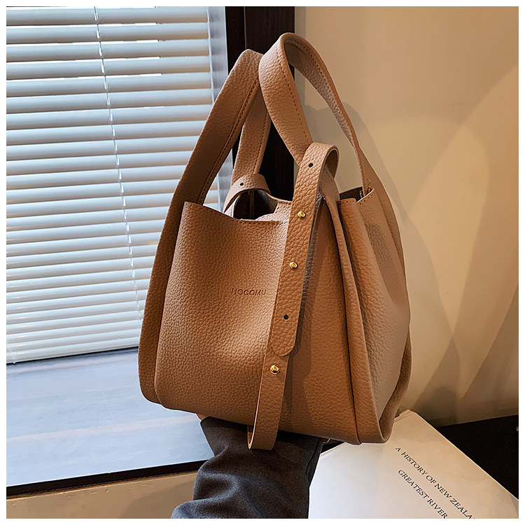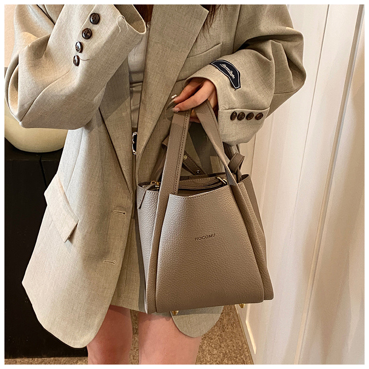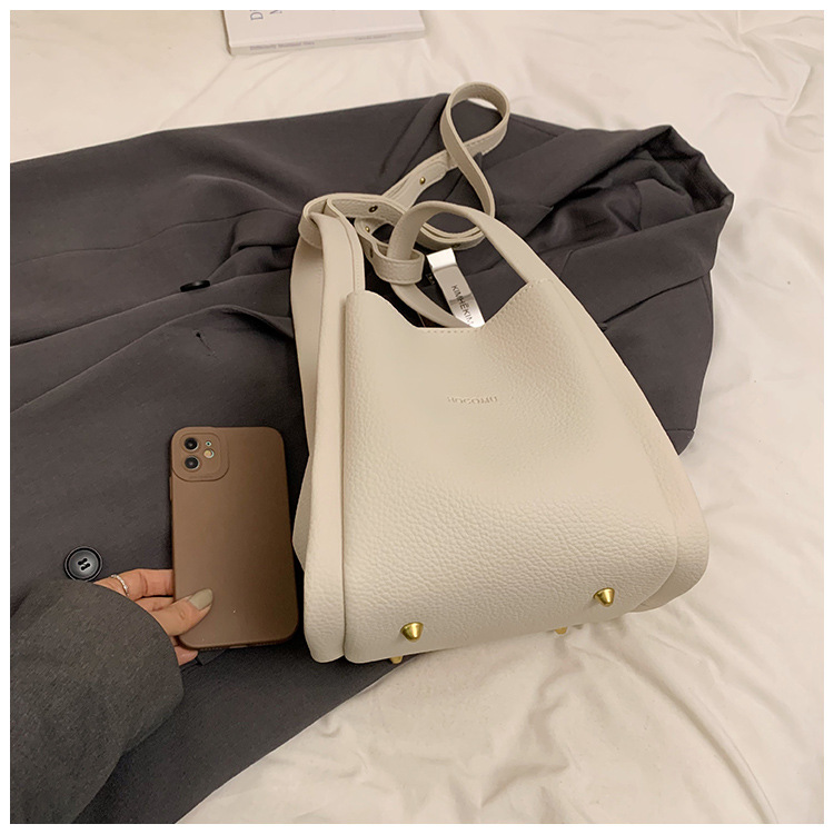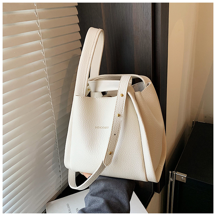 荔枝纹水桶包2024新款女包简约夏季单肩包手提菜篮子包子母两件套