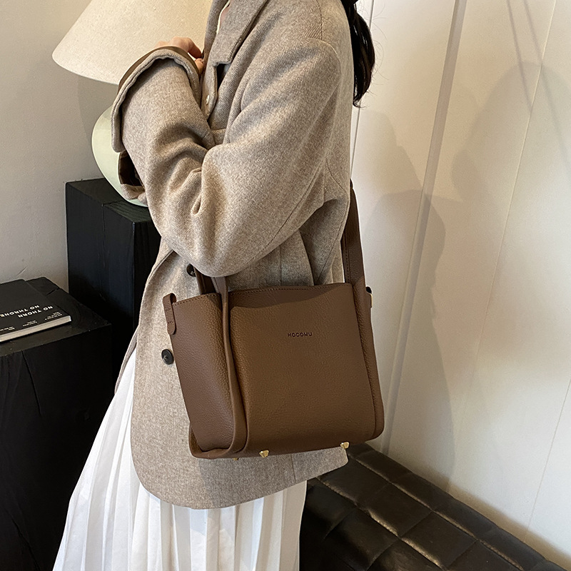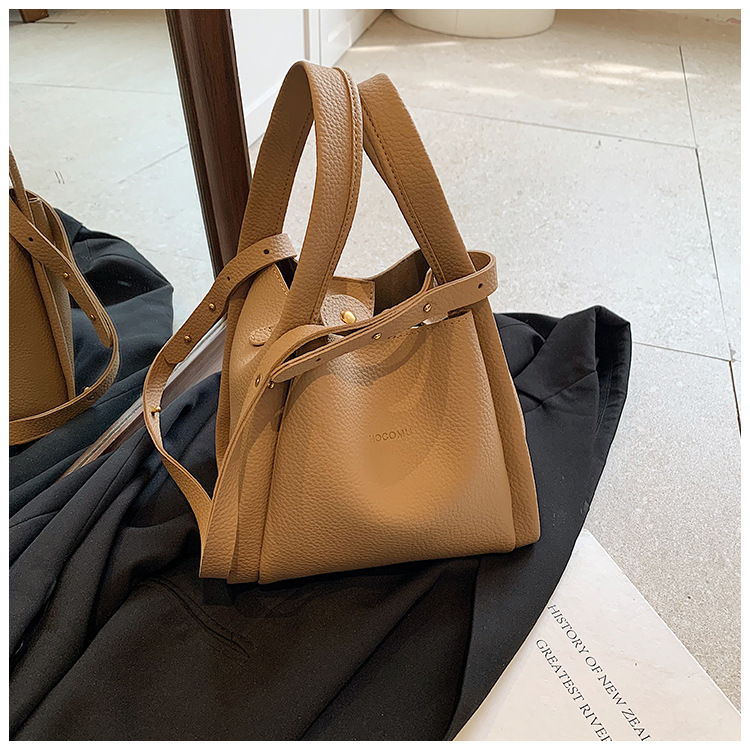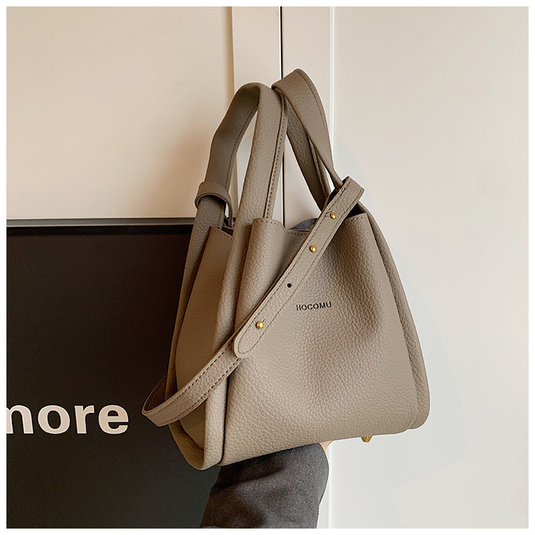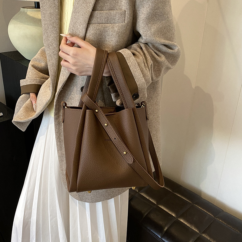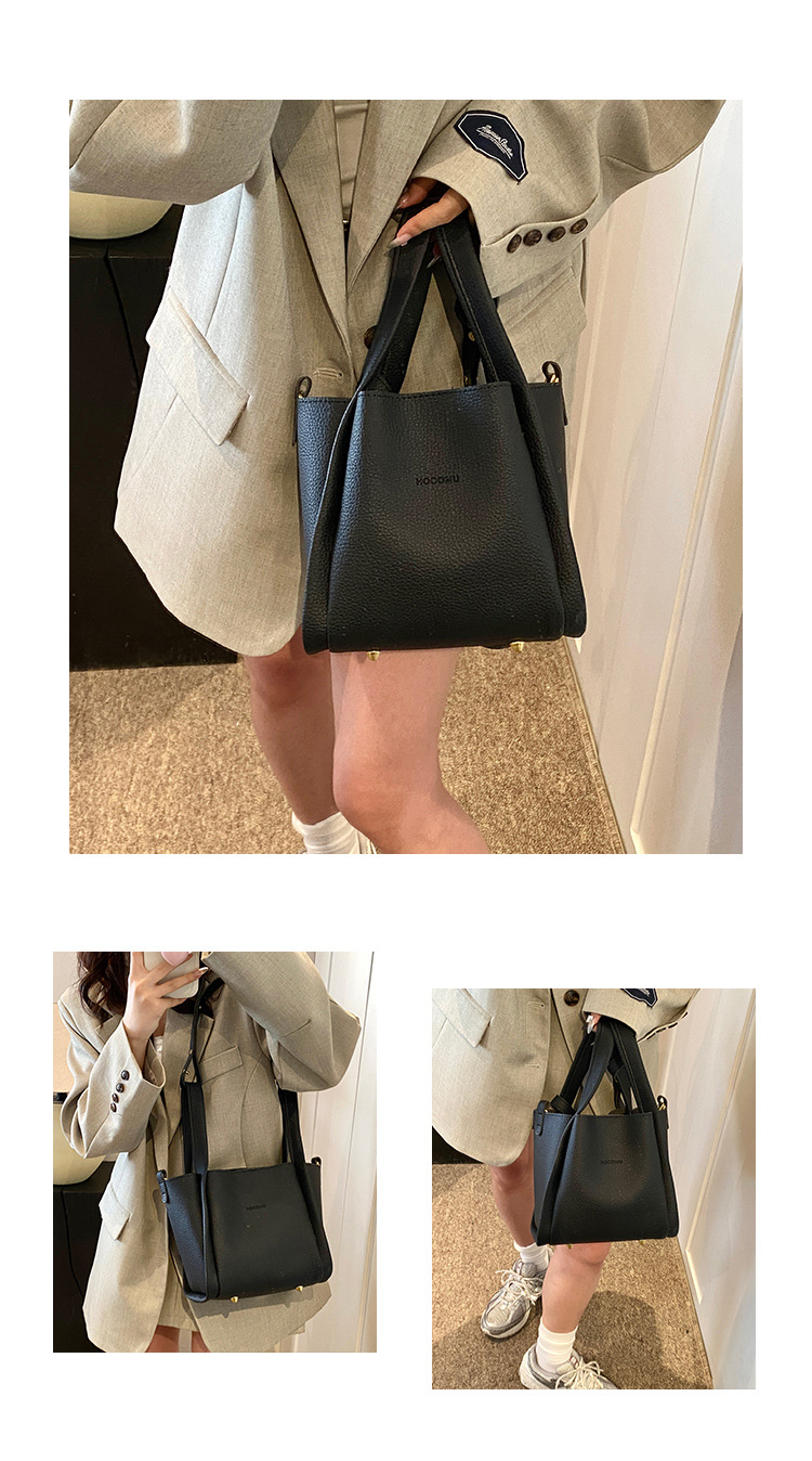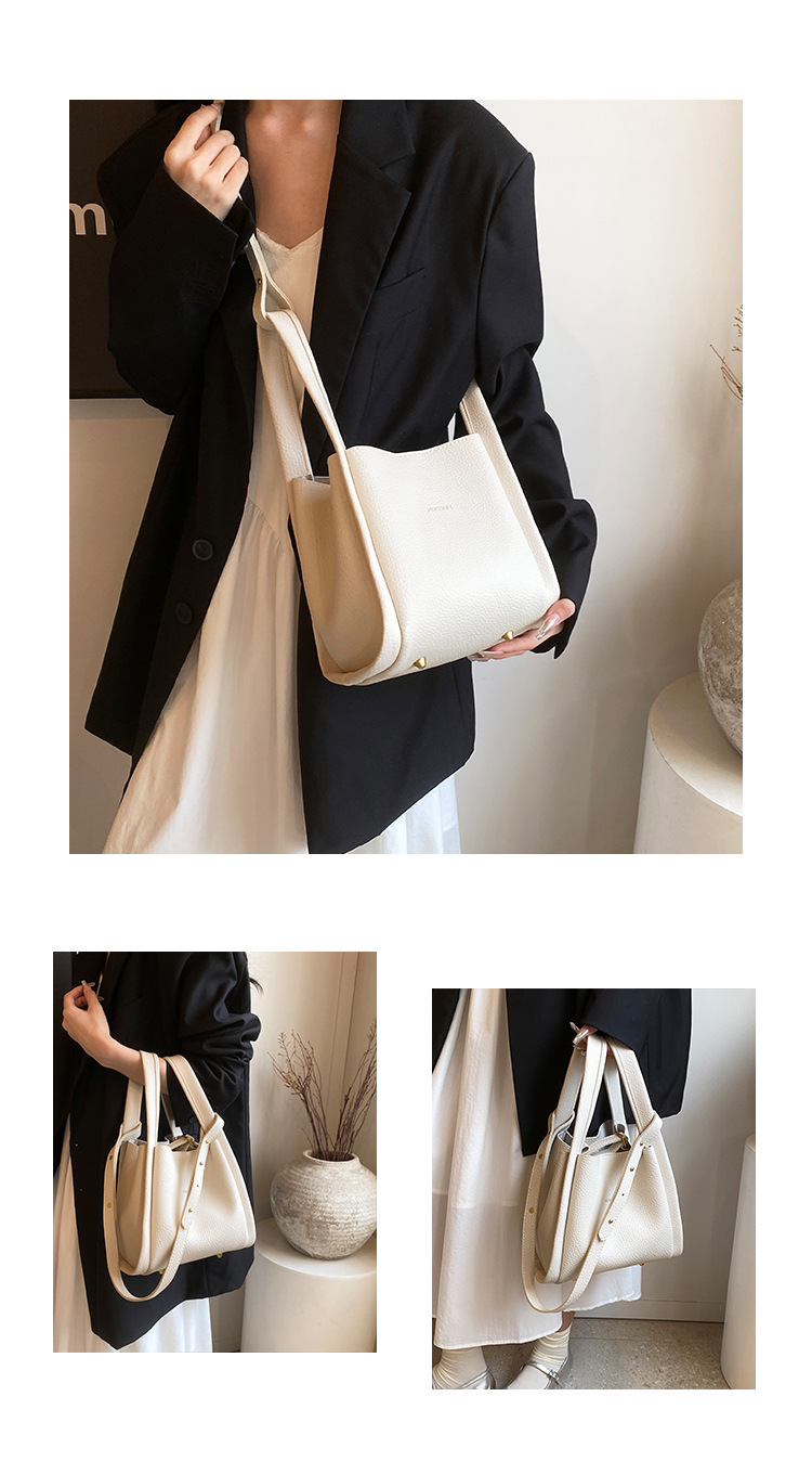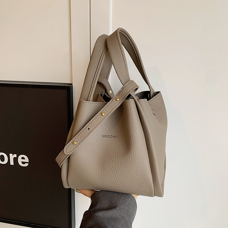 荔枝纹水桶包2024新款女包简约夏季单肩包手提菜篮子包子母两件套