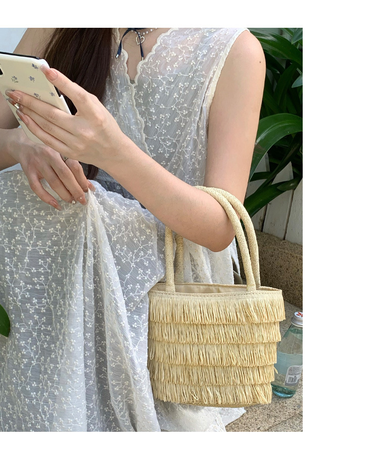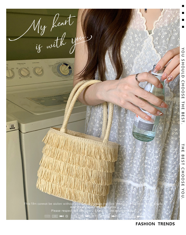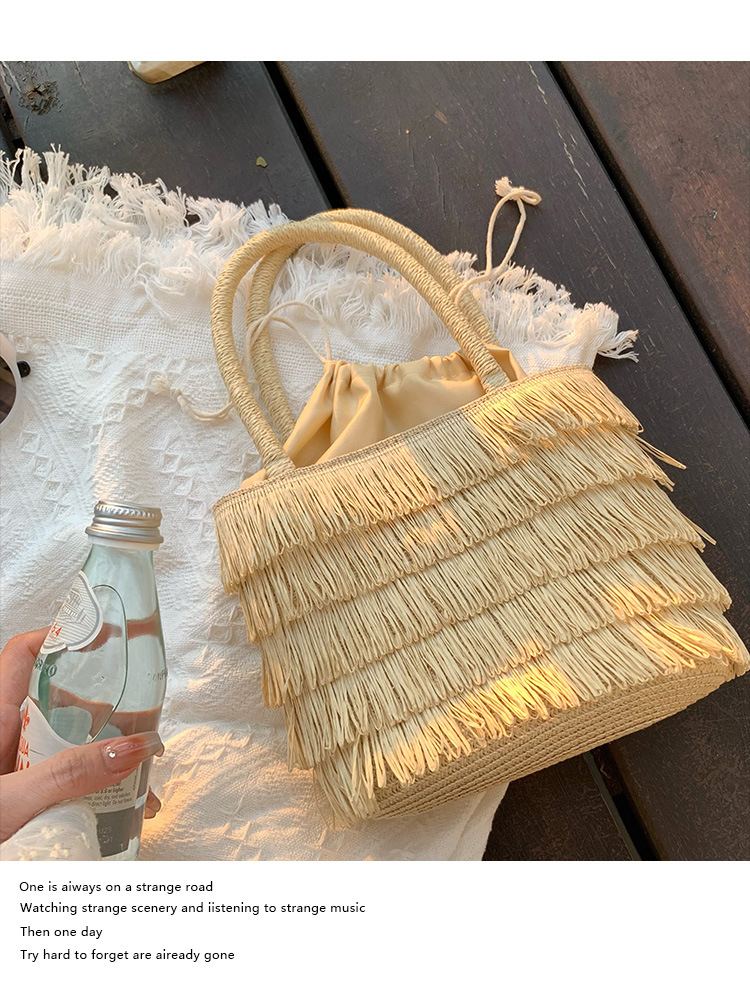 田园风手工草编手提包包女夏季2024新款法式海边流苏沙滩编织包