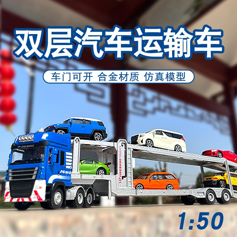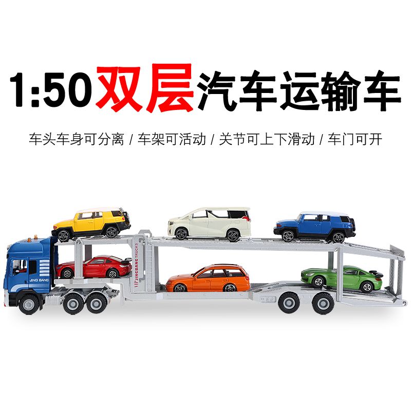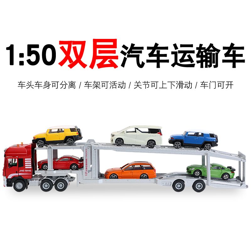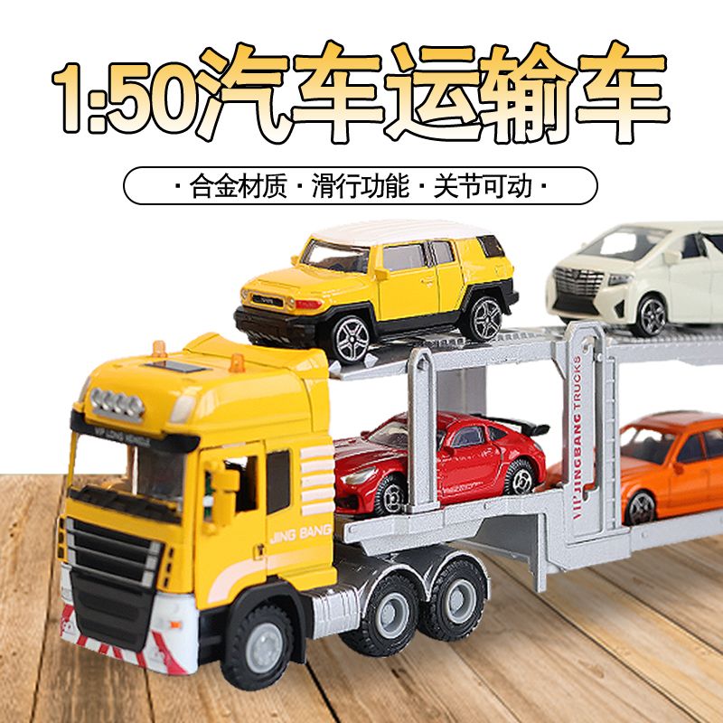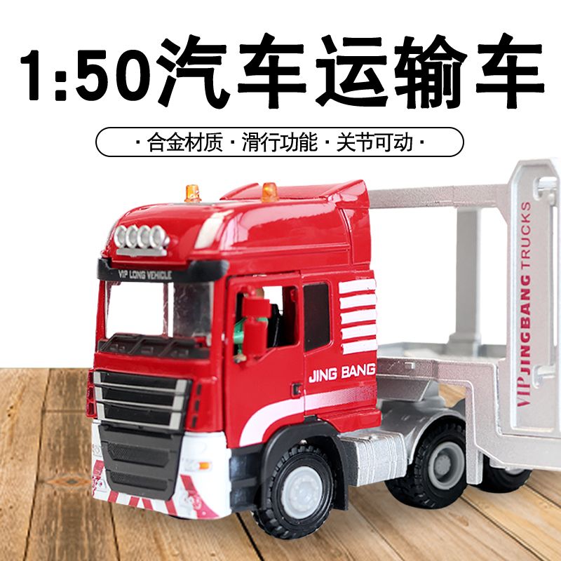 精邦1:50合金工程运输车汽车运输车带小车卡车儿童玩具仿真模型车