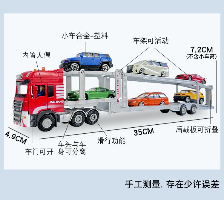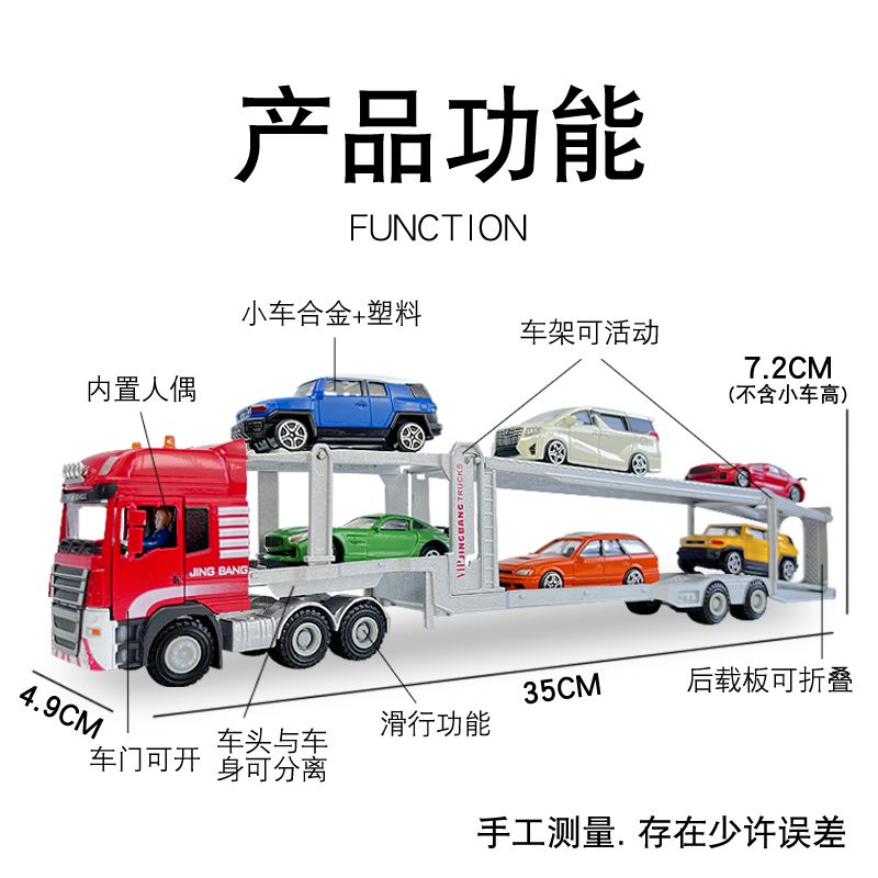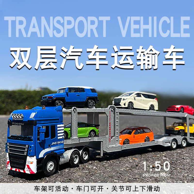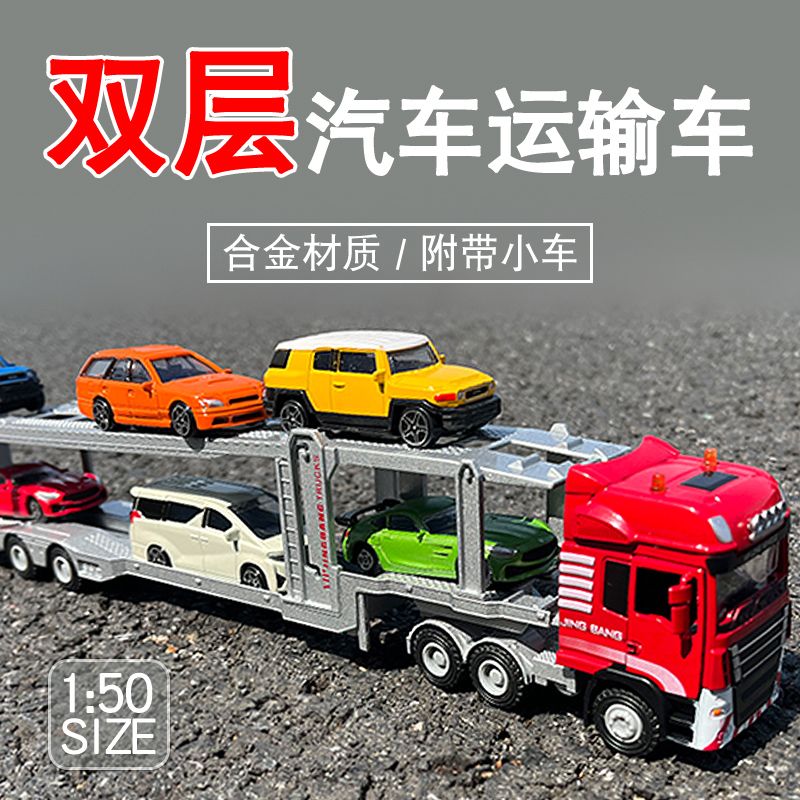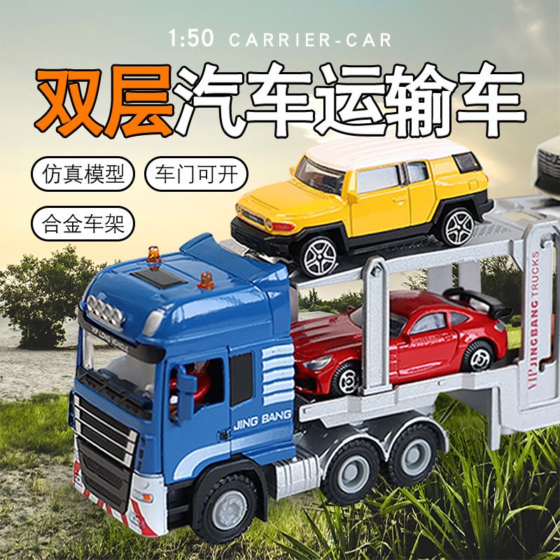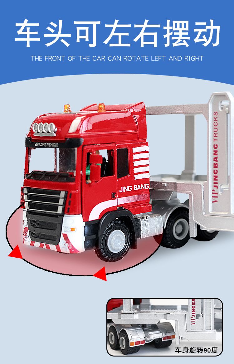 精邦1:50合金工程运输车汽车运输车带小车卡车儿童玩具仿真模型车