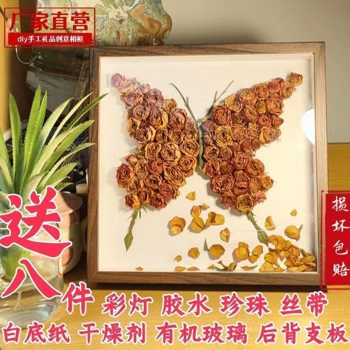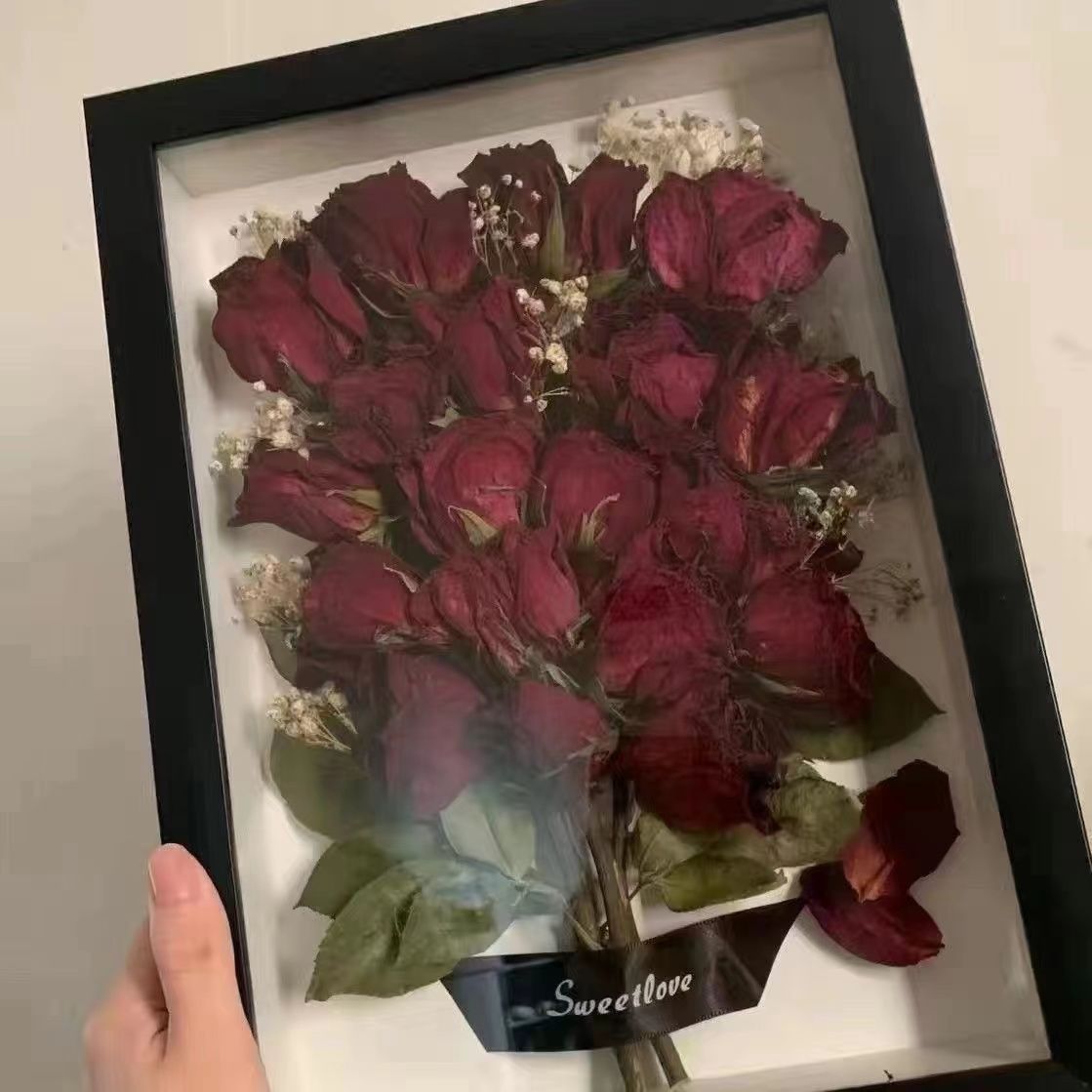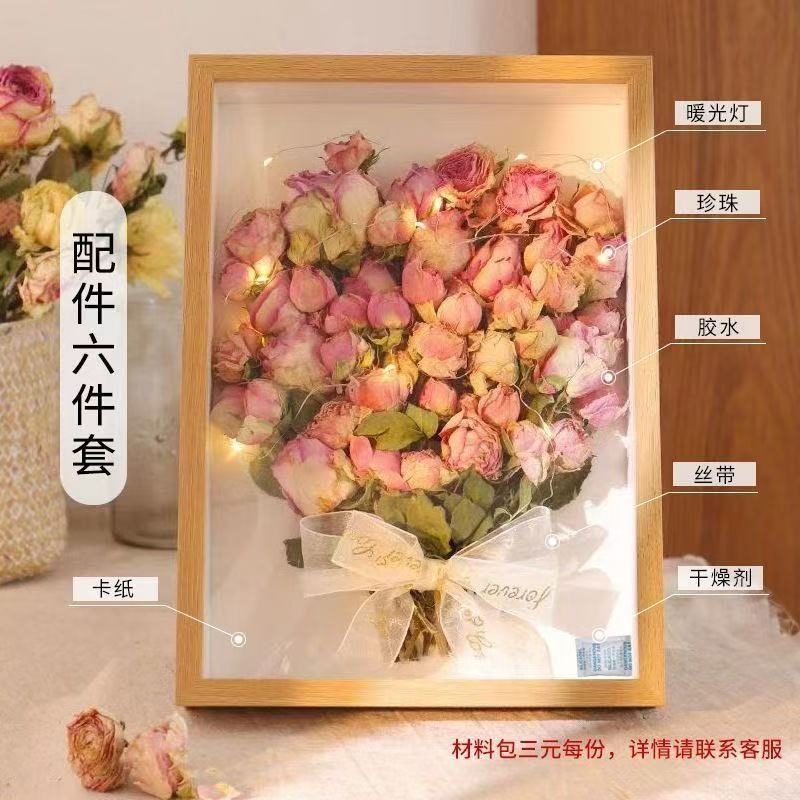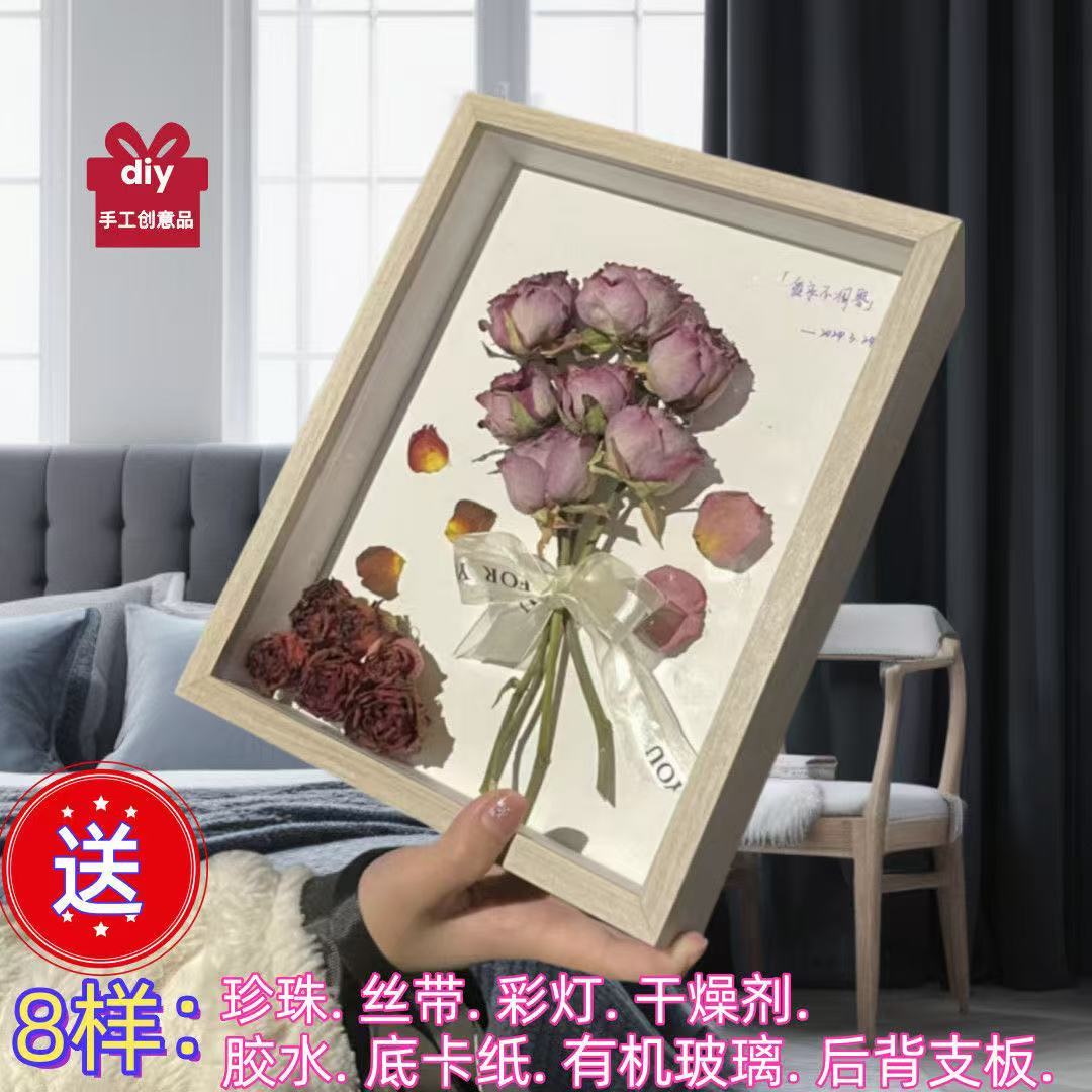 中空干花相框纸巾玫瑰标本框diy手工相框摆台纸巾玫瑰花保存画框