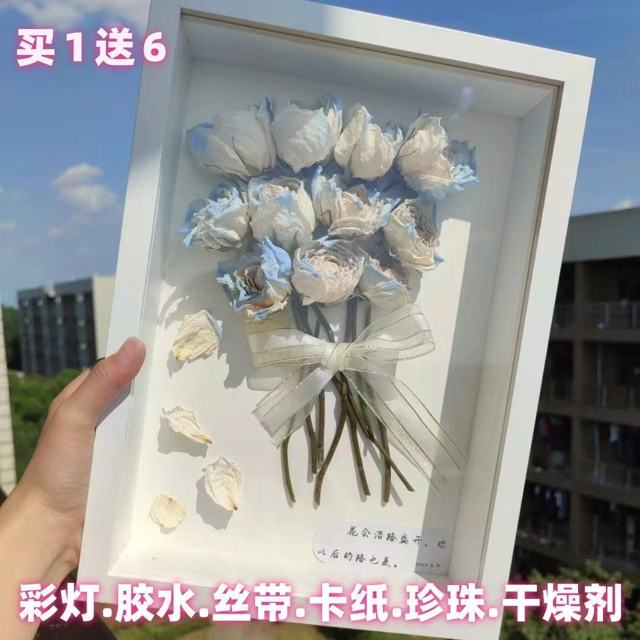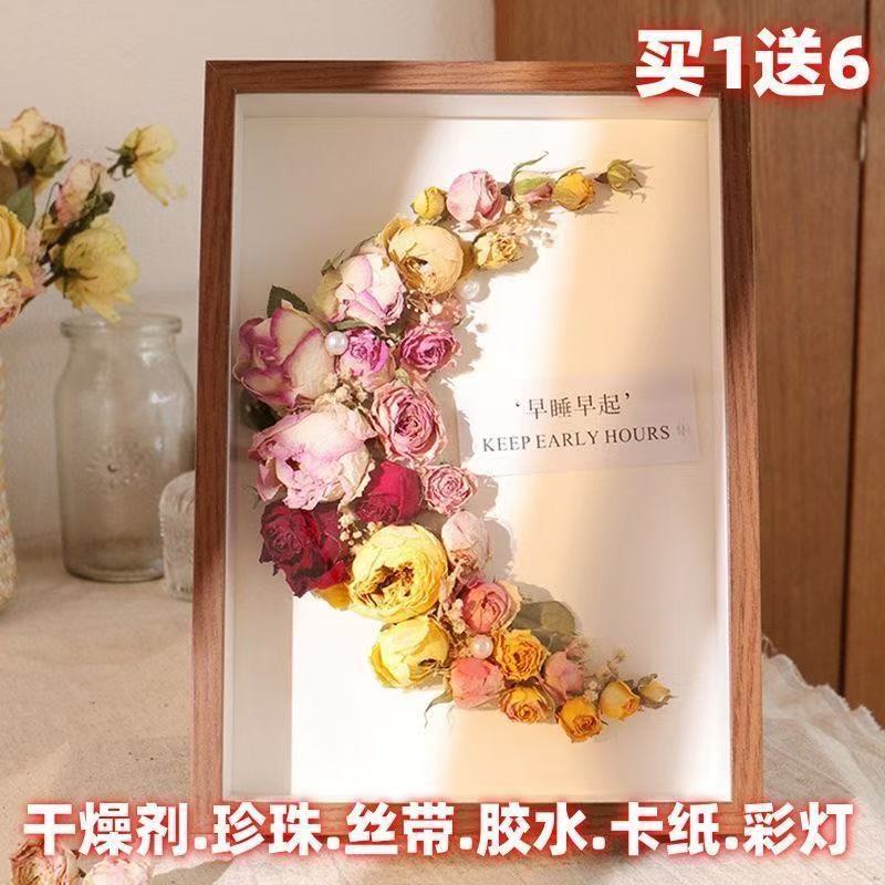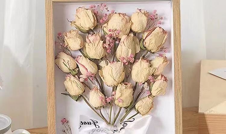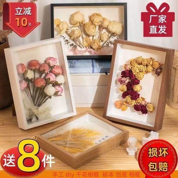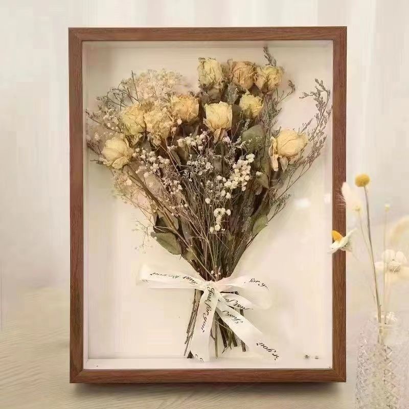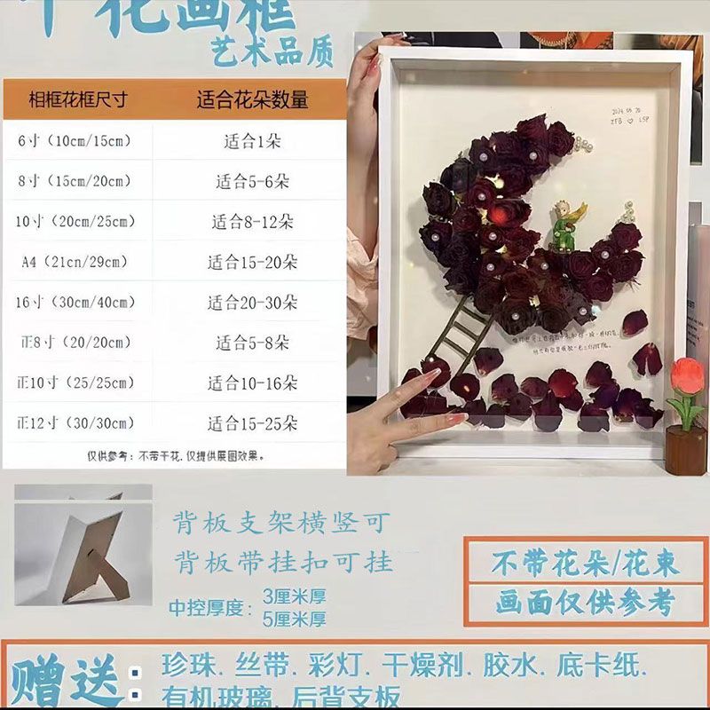 中空干花相框纸巾玫瑰标本框diy手工相框摆台纸巾玫瑰花保存画框