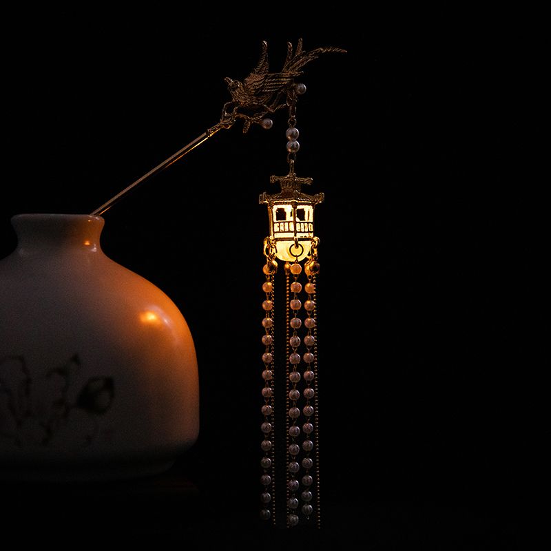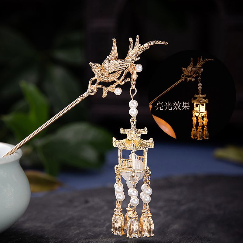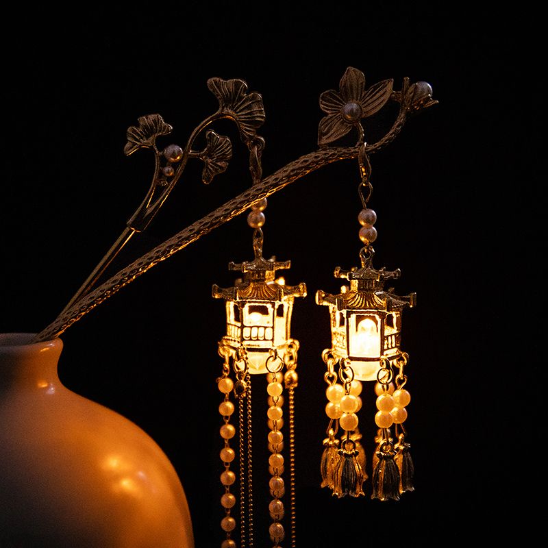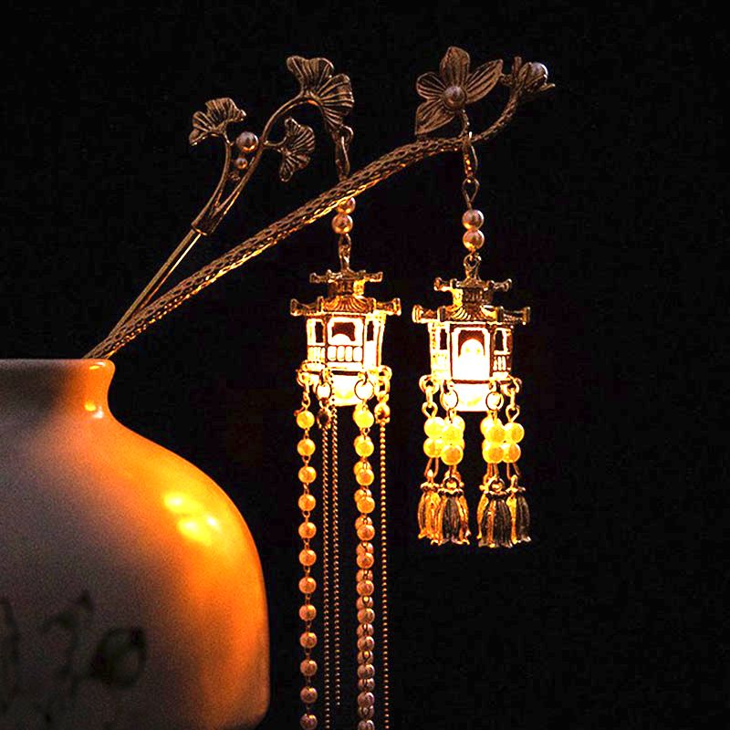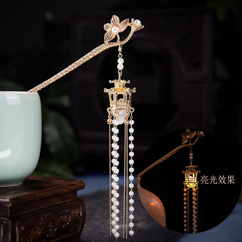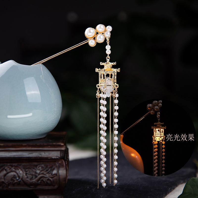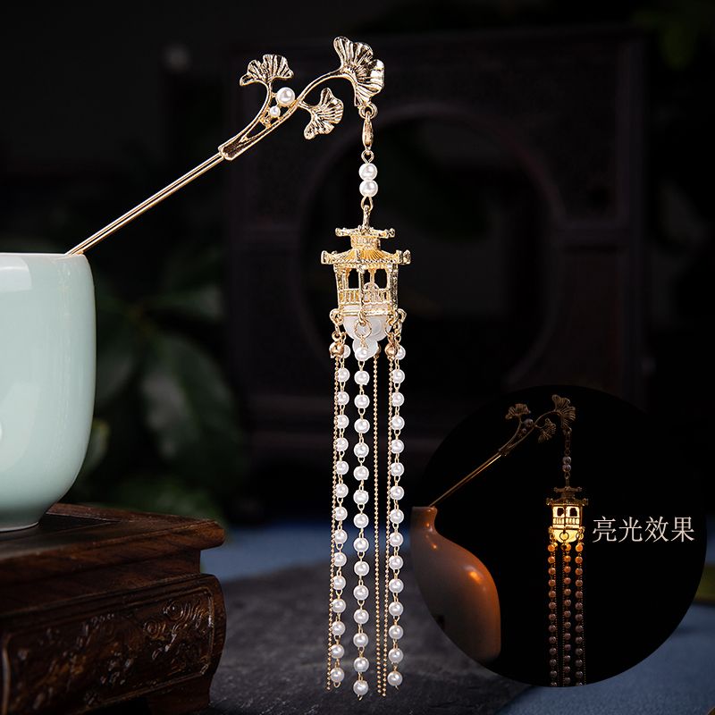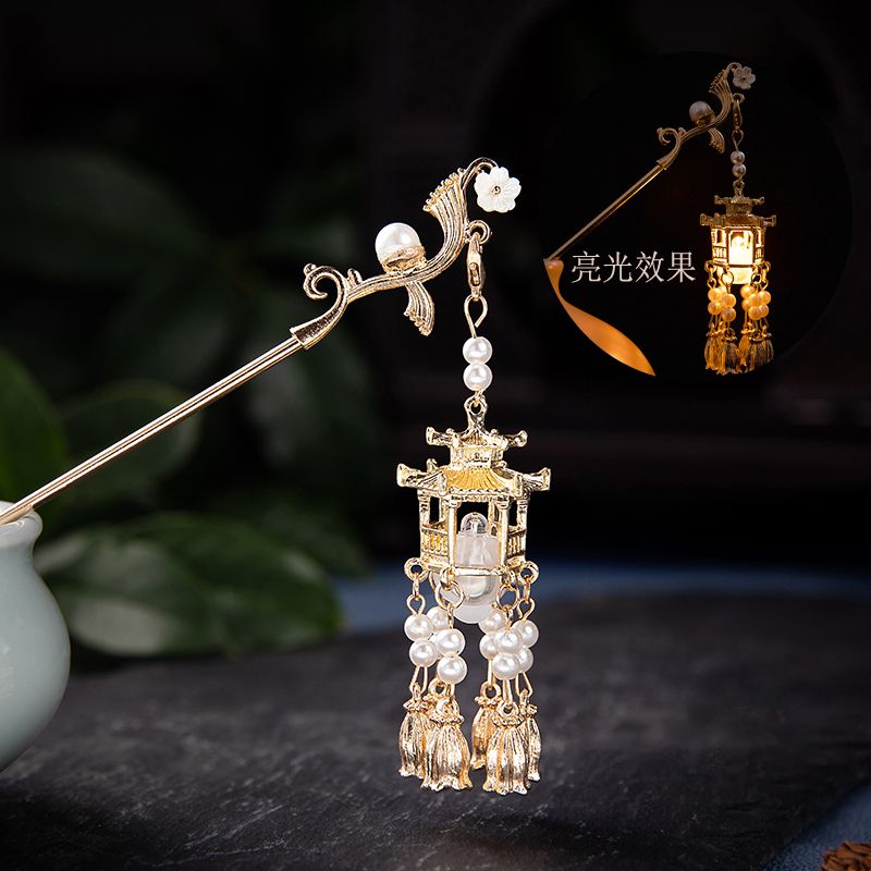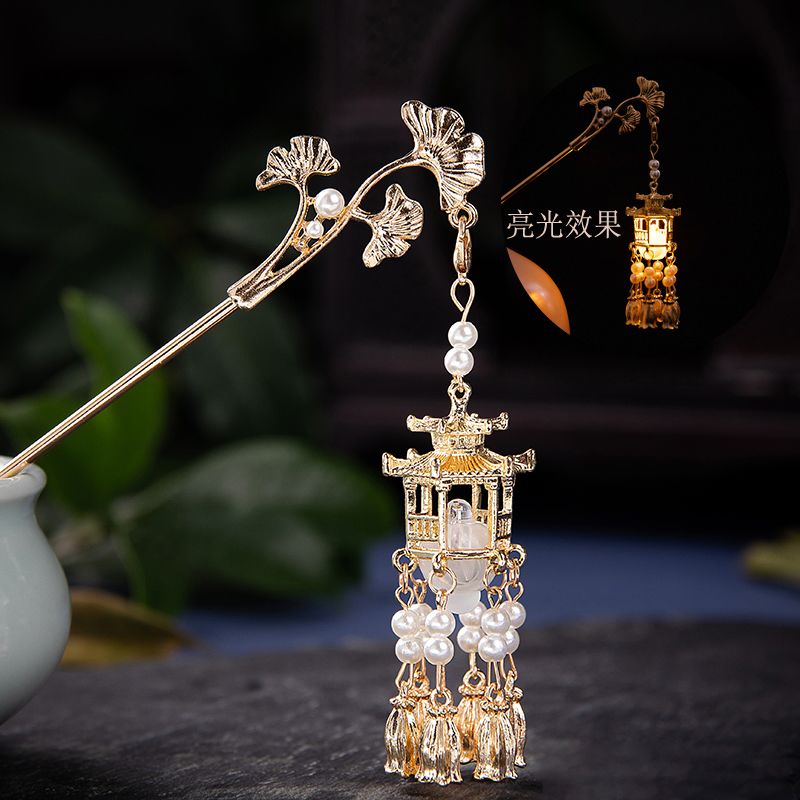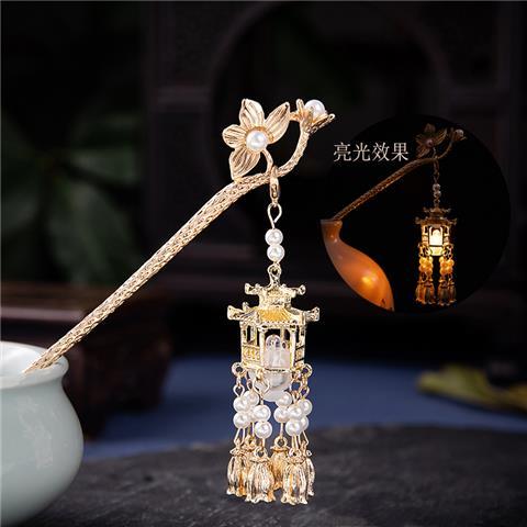 原创复古流苏宫灯发簪汉服配饰发光簪子古风女子头饰精品配饰日常