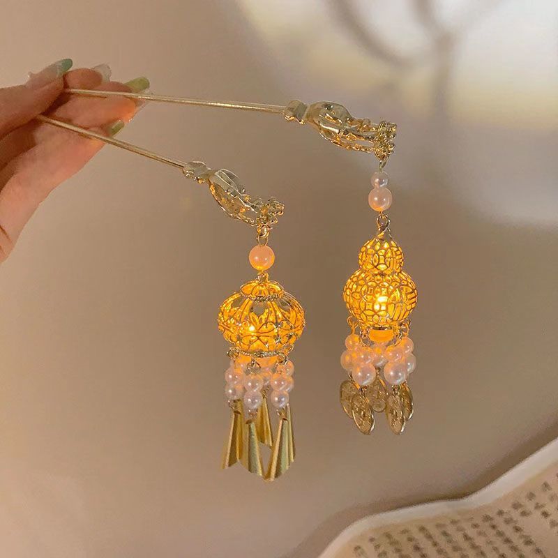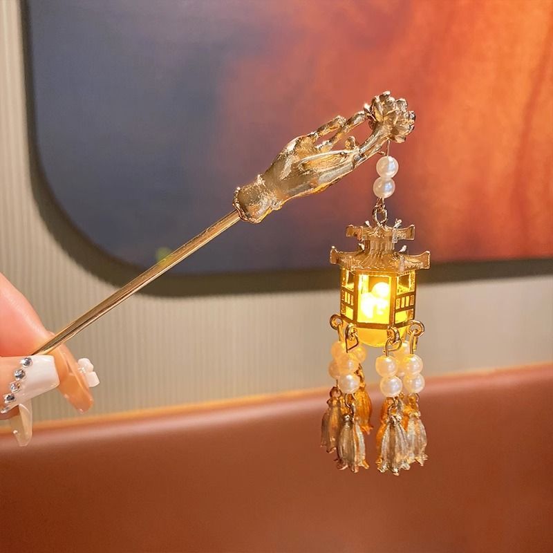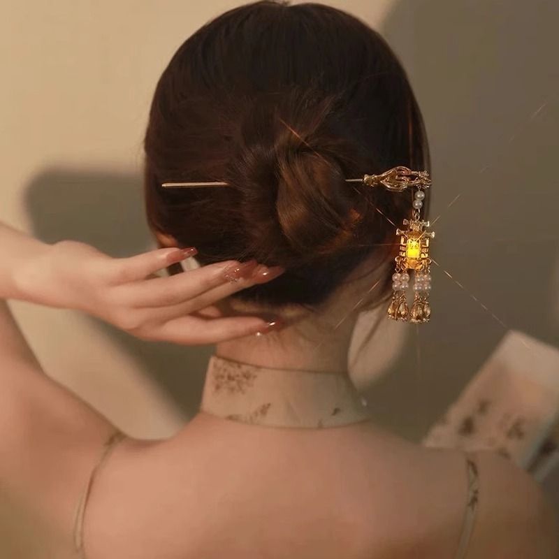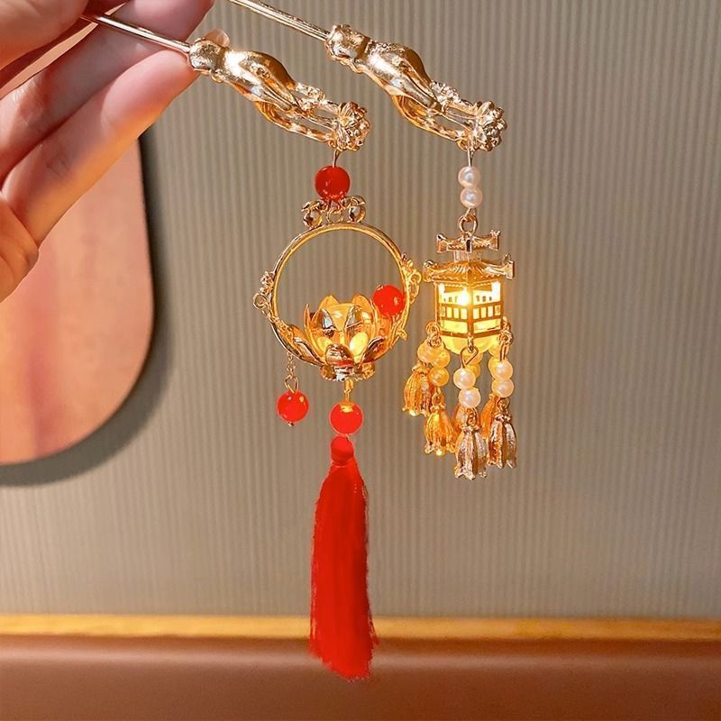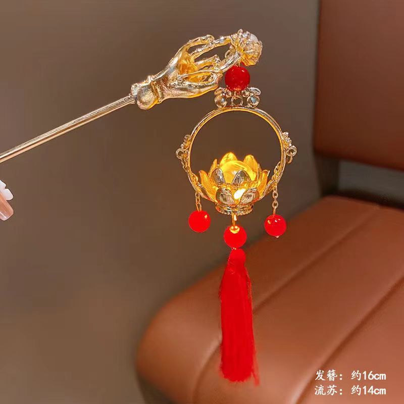 会发光的宫灯发簪女古风汉服发钗步摇配饰高级感日常盘发簪子头饰