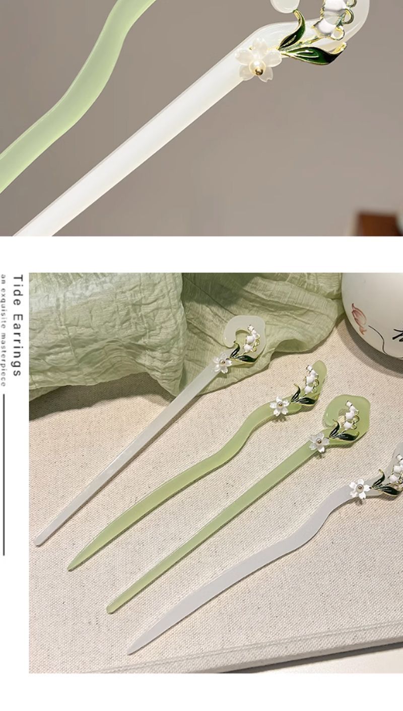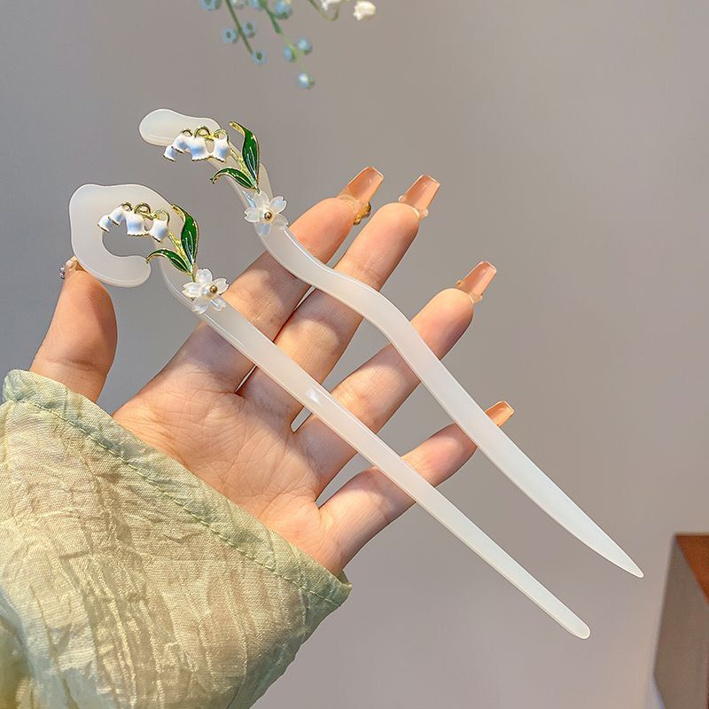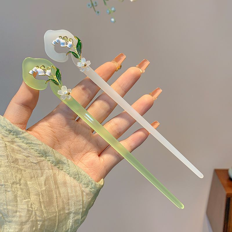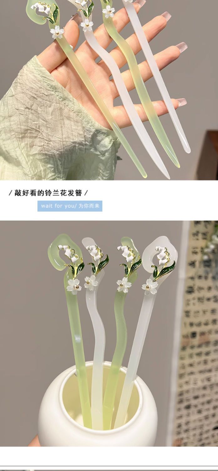 小众百搭铃兰花中式清冷高级发簪春夏盘发簪子古风配旗袍头饰简约