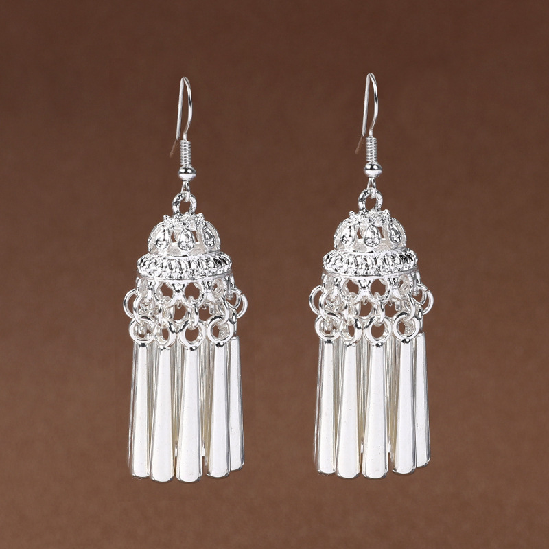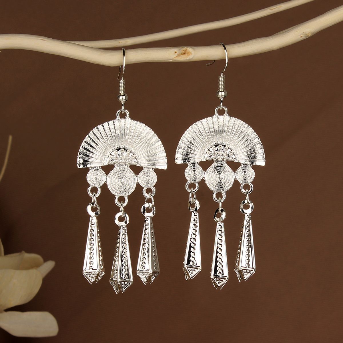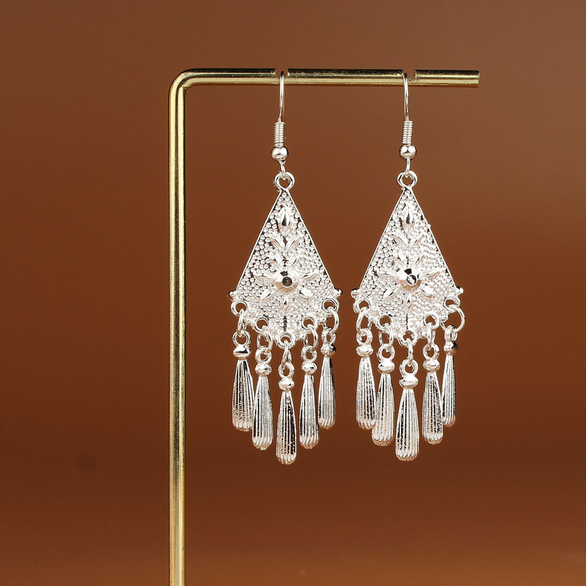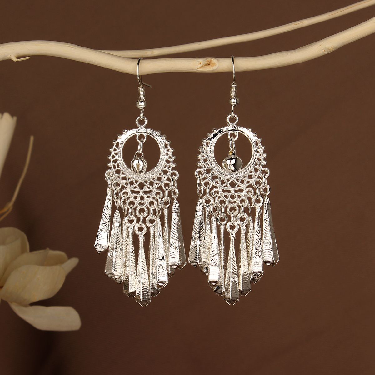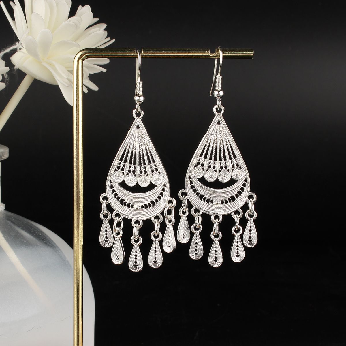 少数民族风苗银流苏耳环复古个性云南苗族夏季长款流苏耳坠女耳饰