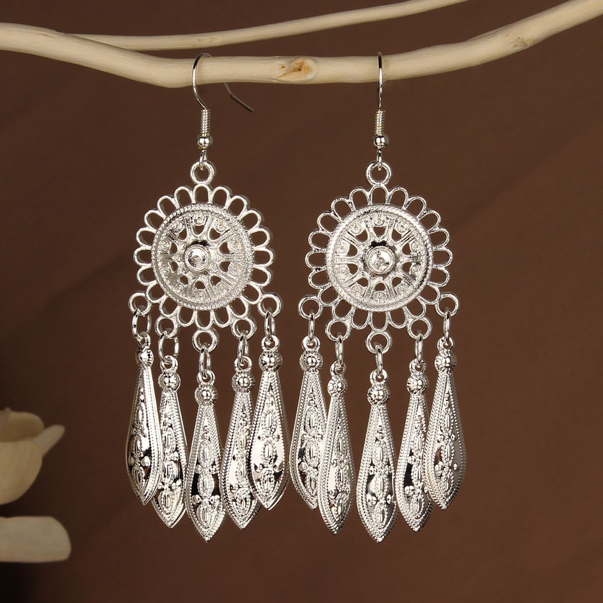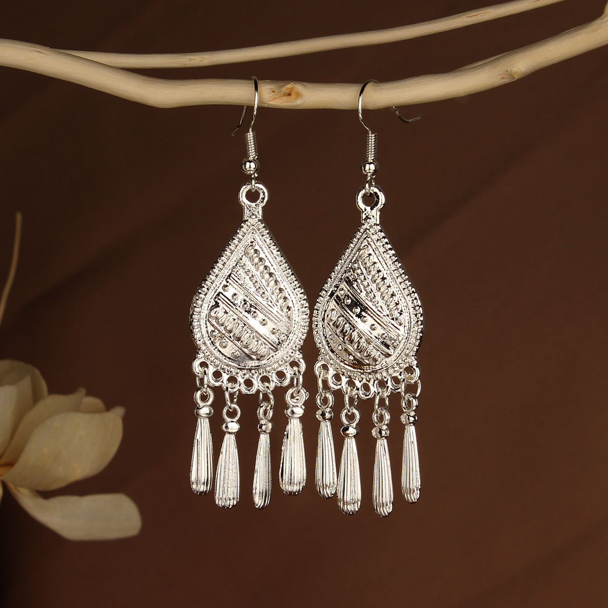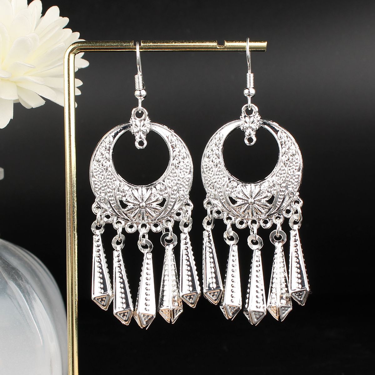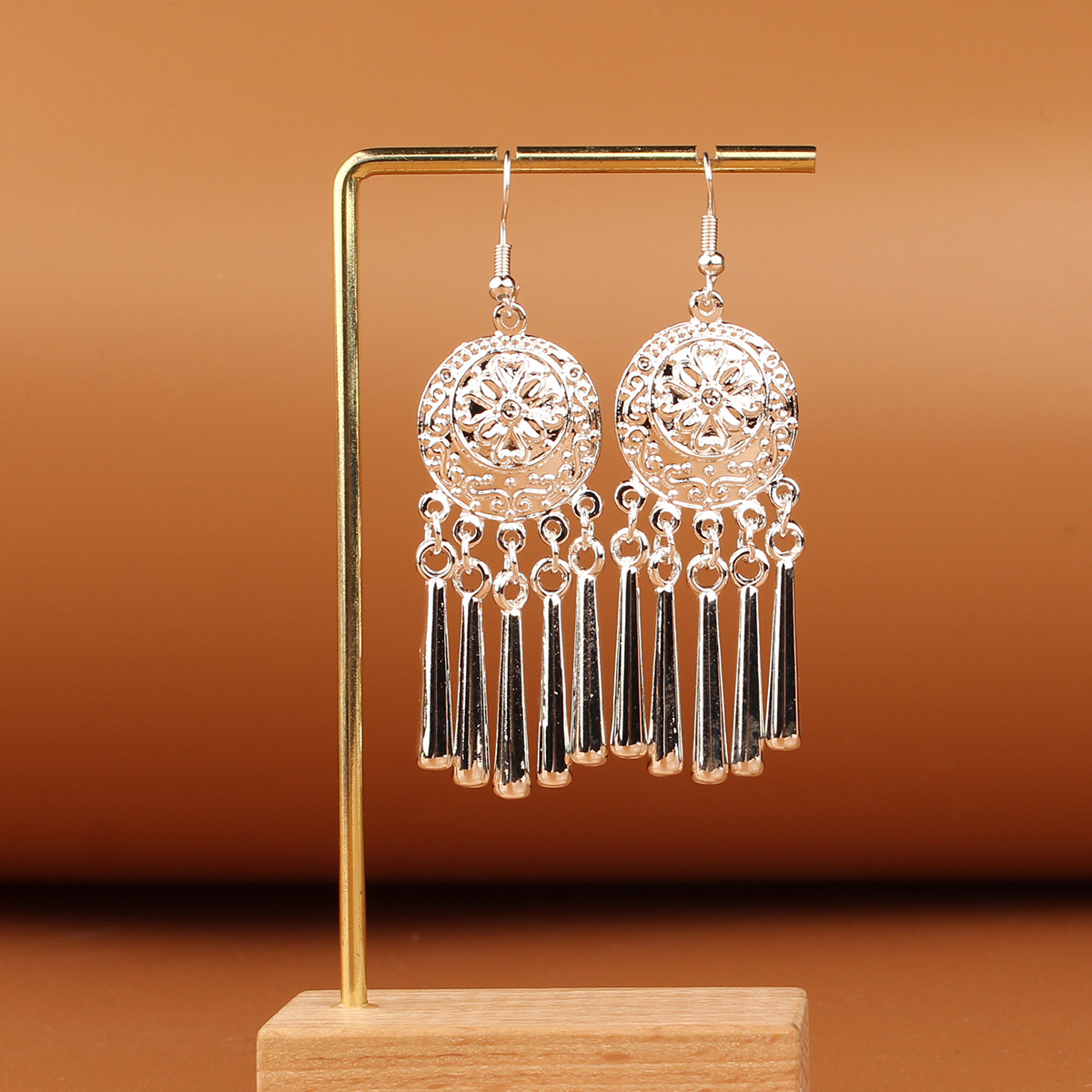 少数民族风苗银流苏耳环复古个性云南苗族夏季长款流苏耳坠女耳饰
