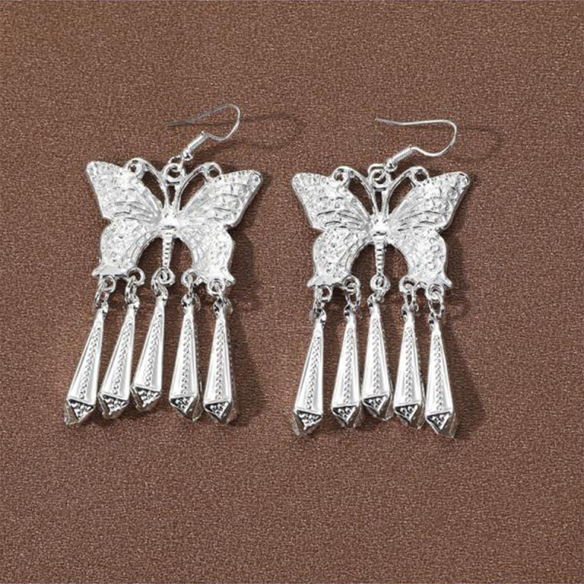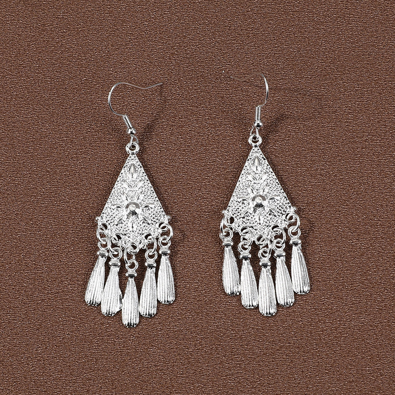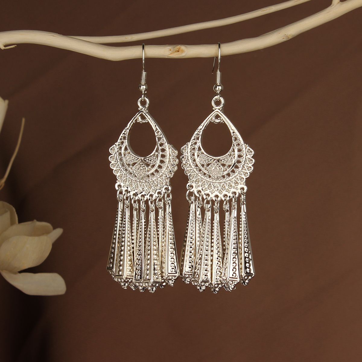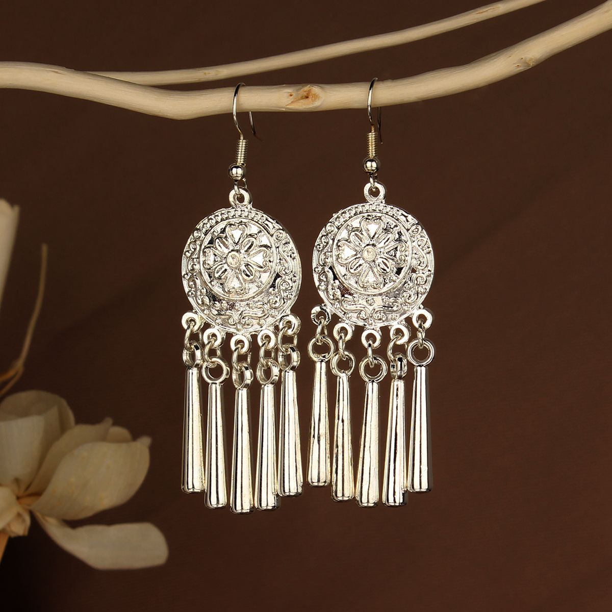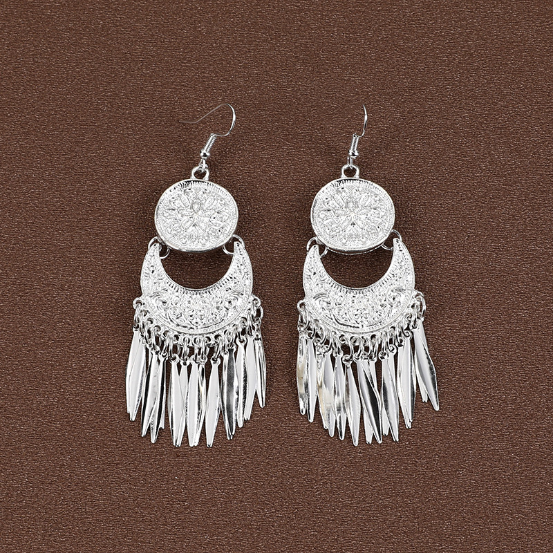 少数民族风苗银流苏耳环复古个性云南苗族夏季长款流苏耳坠女耳饰