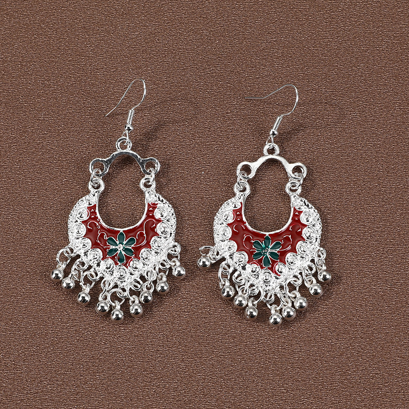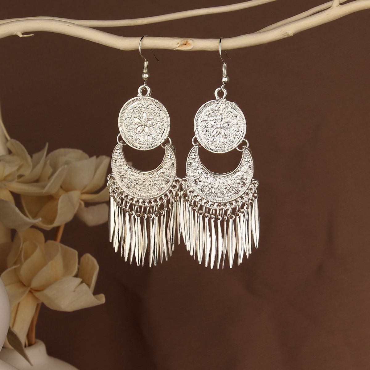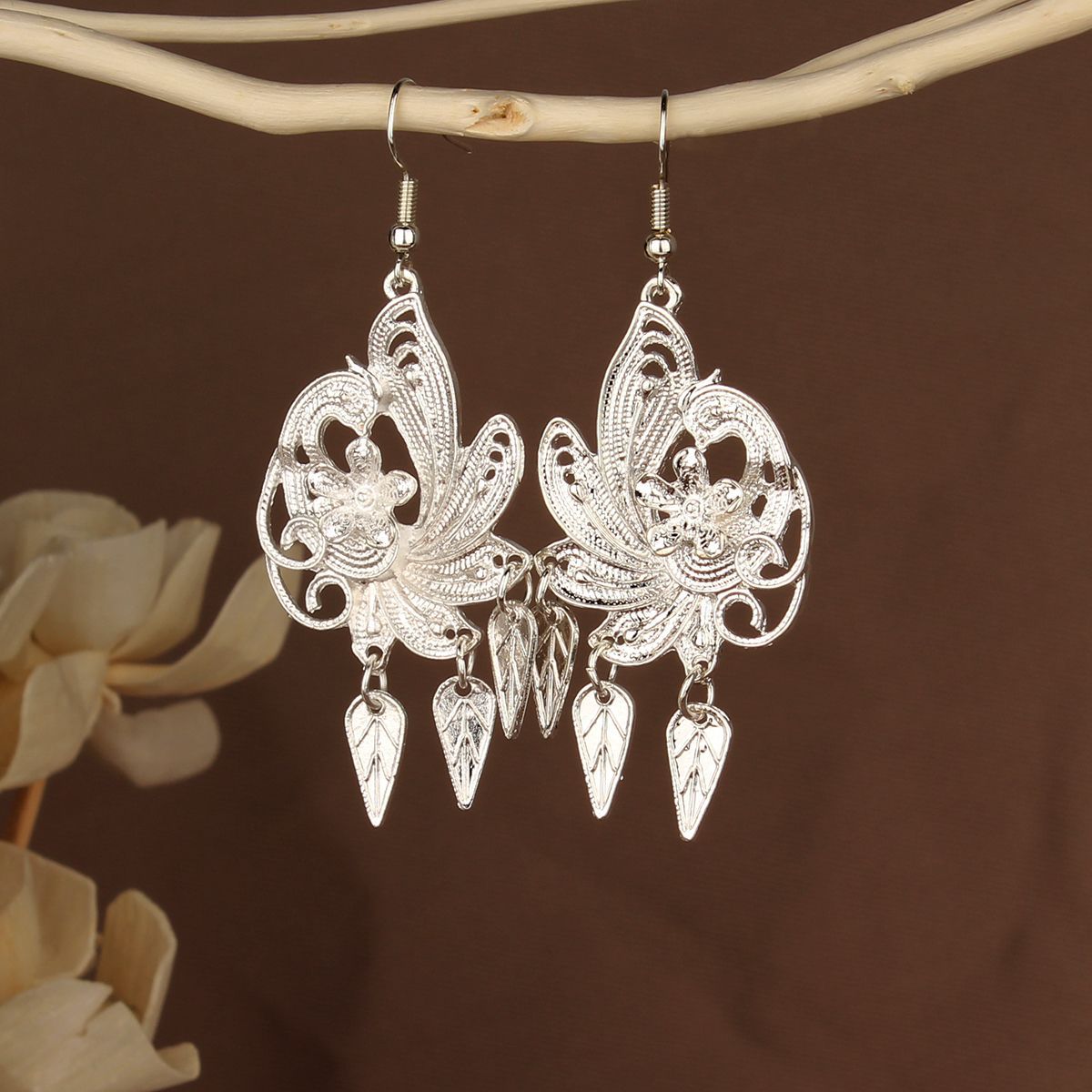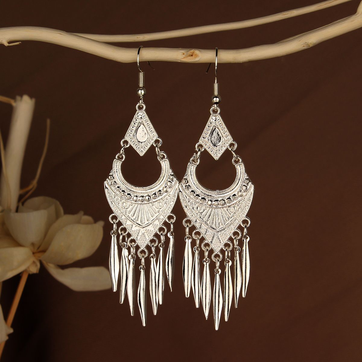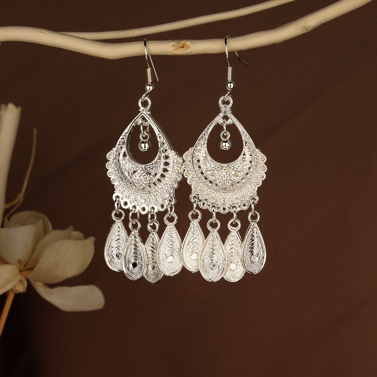 少数民族风苗银流苏耳环复古个性云南苗族夏季长款流苏耳坠女耳饰