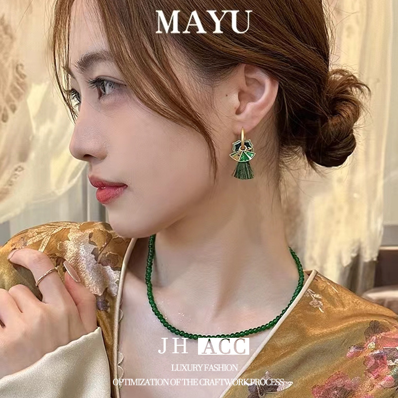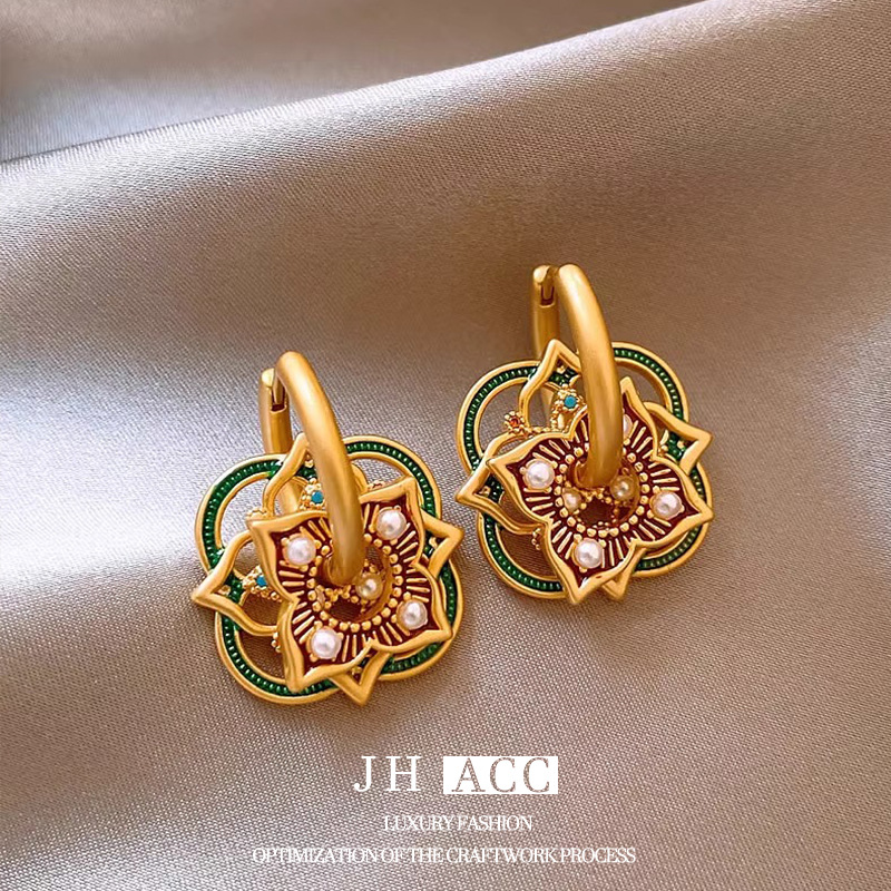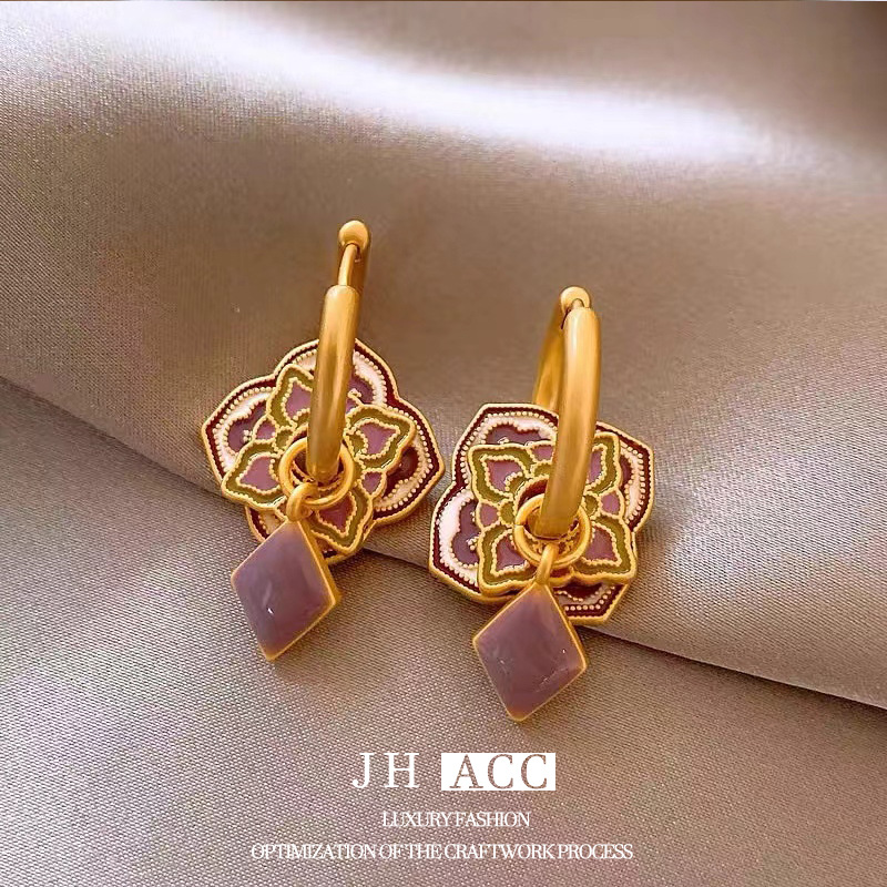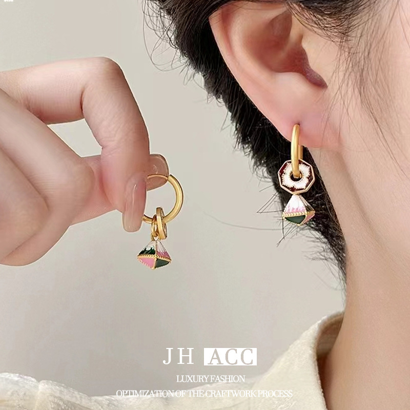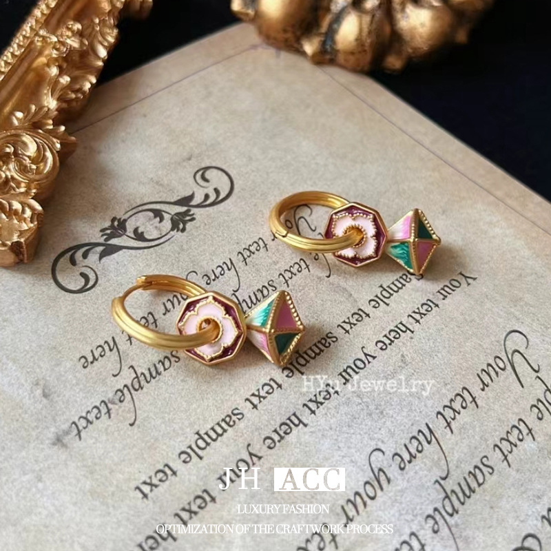 s925新中式国潮珐琅滴釉扇子耳环女小众高级设计一款多戴彩绘耳饰