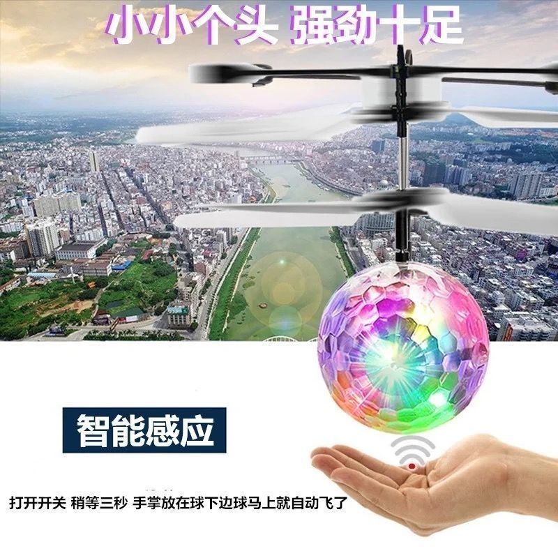 抖音智能感应飞行器七彩水晶球遥控飞机玩具抖音飞碟儿童悬浮球