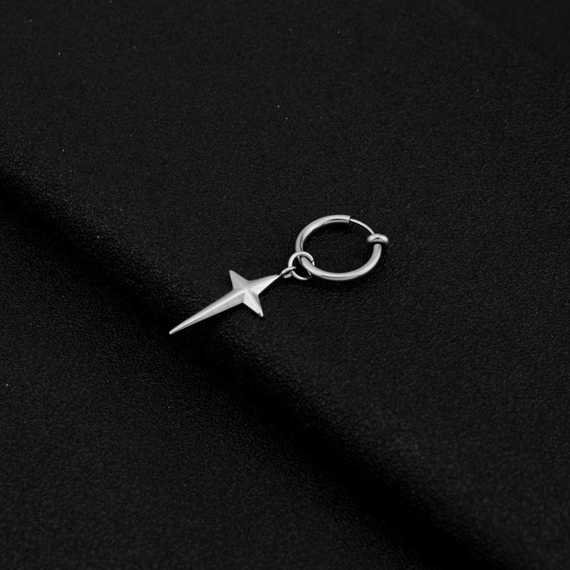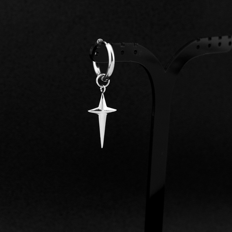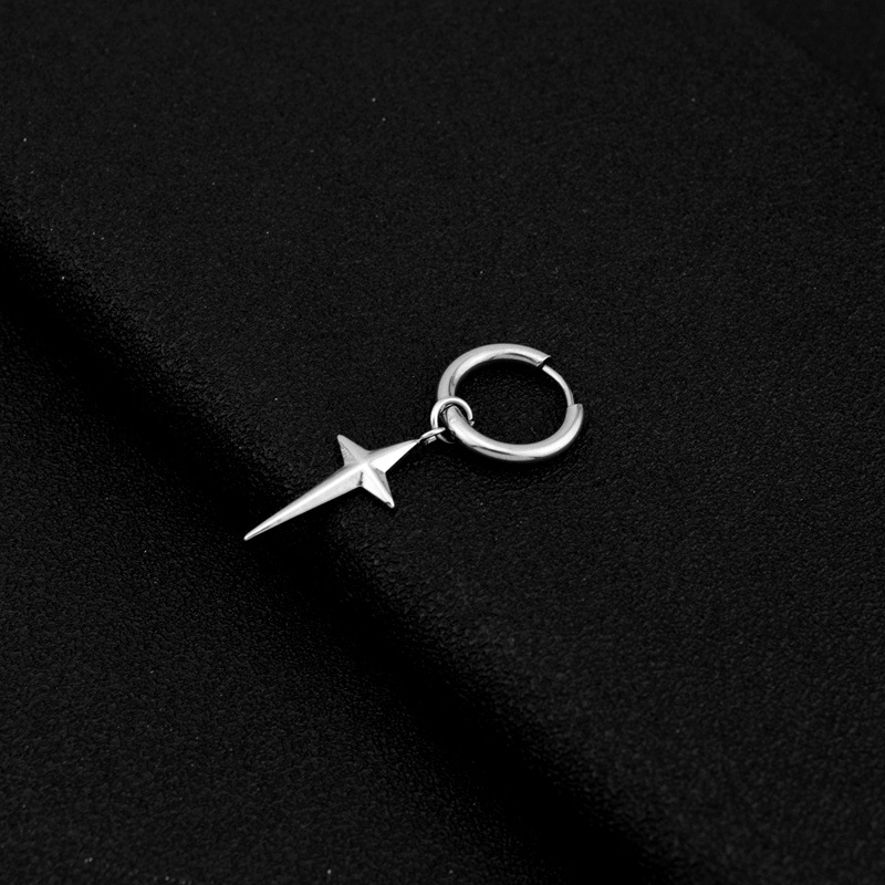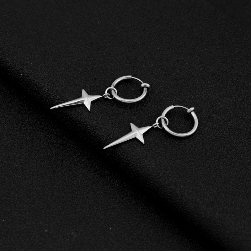 不锈钢立体十字星耳环男士简约中性风钛钢耳环嘻哈朋克无耳洞耳夹
