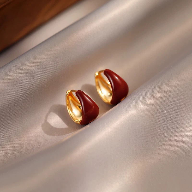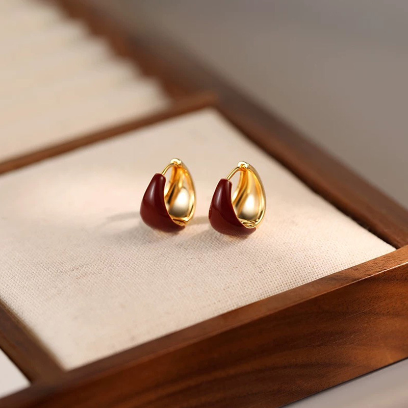 安可拉红色耳扣新款爆款秋冬小众高级感红色耳环新年款酒红色耳饰