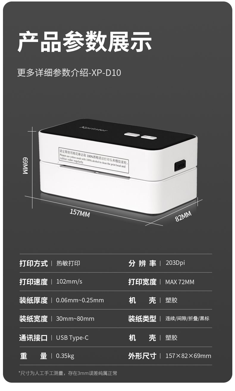 芯烨D10快递单打印机一二联电子面单打印机热敏标签机条码打印机