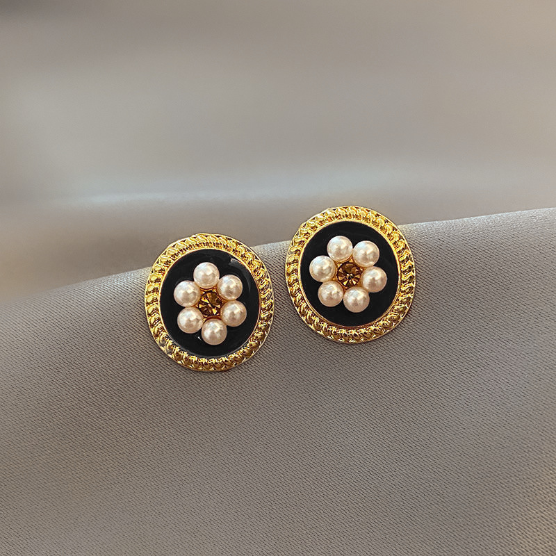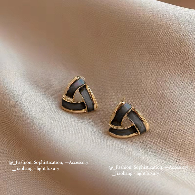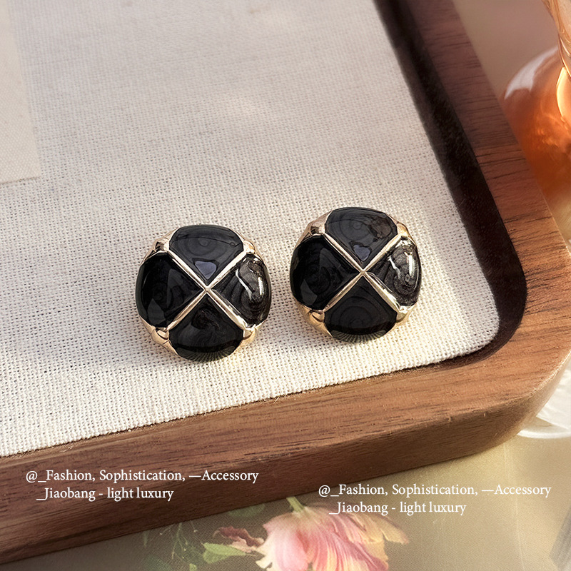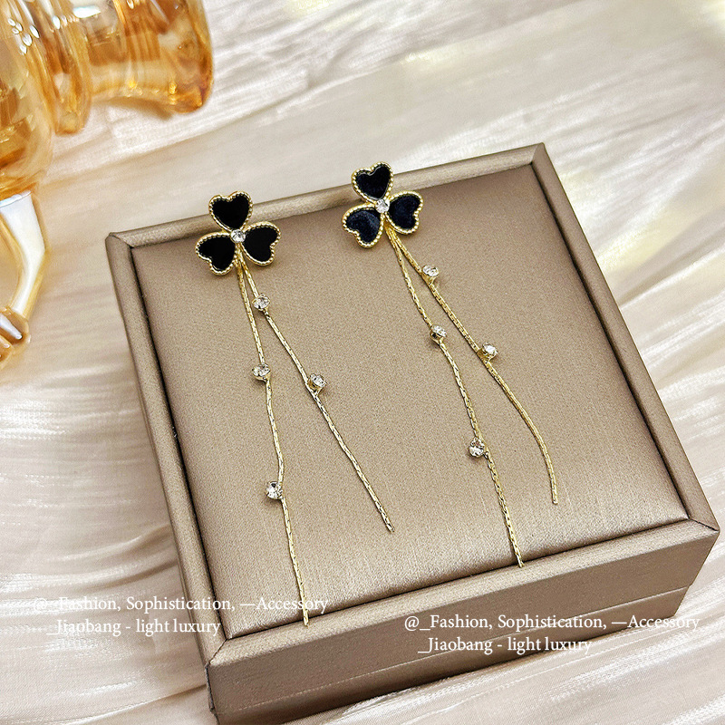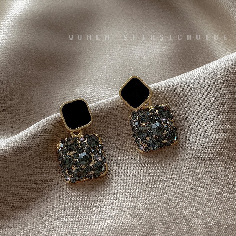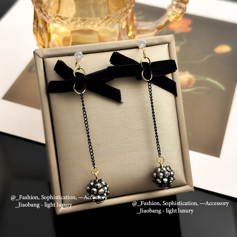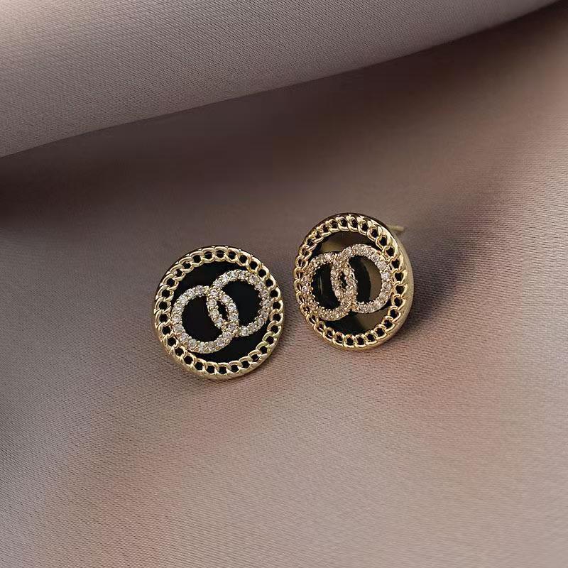 银针时尚高级感镶钻黑色耳环小众百搭气质耳坠轻奢高品质耳饰批发