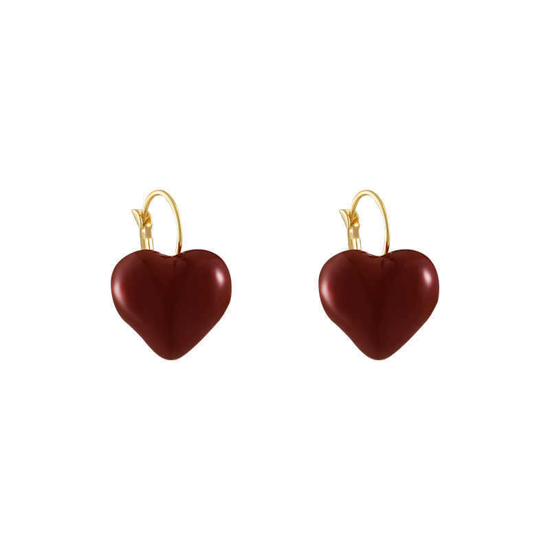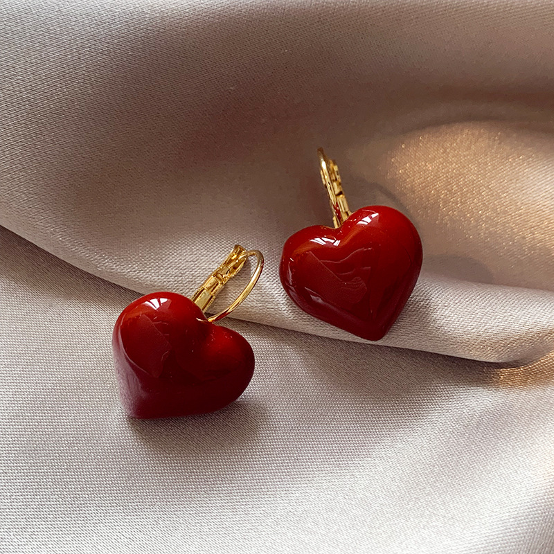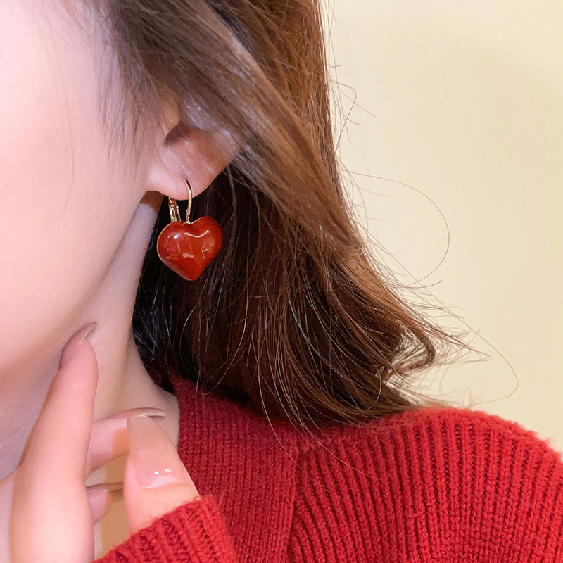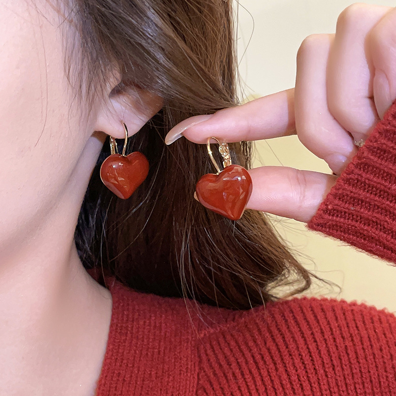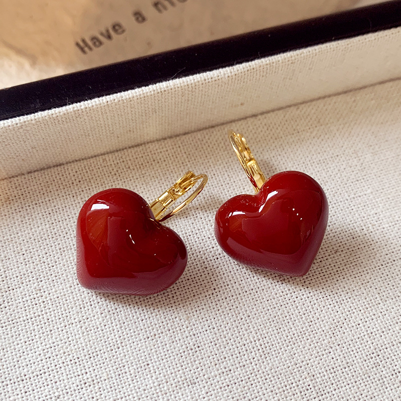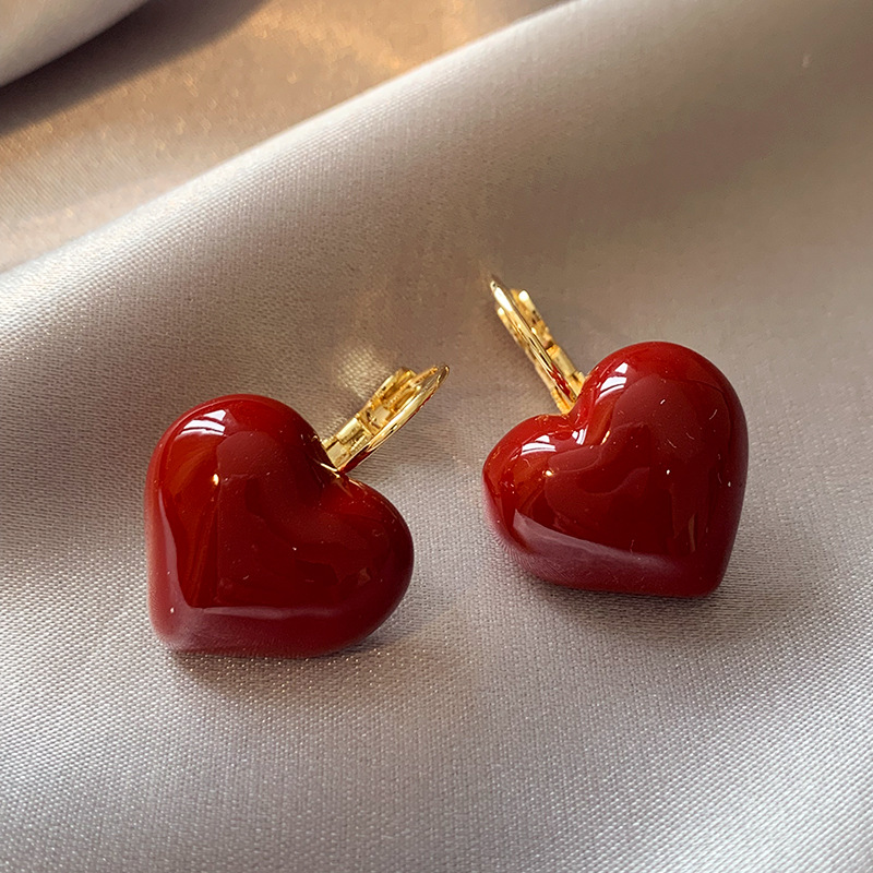 安可拉红色滴油爱心耳环新款港风复古耳扣秋冬时尚高级感耳饰秋冬