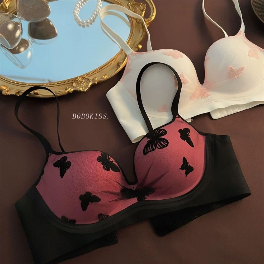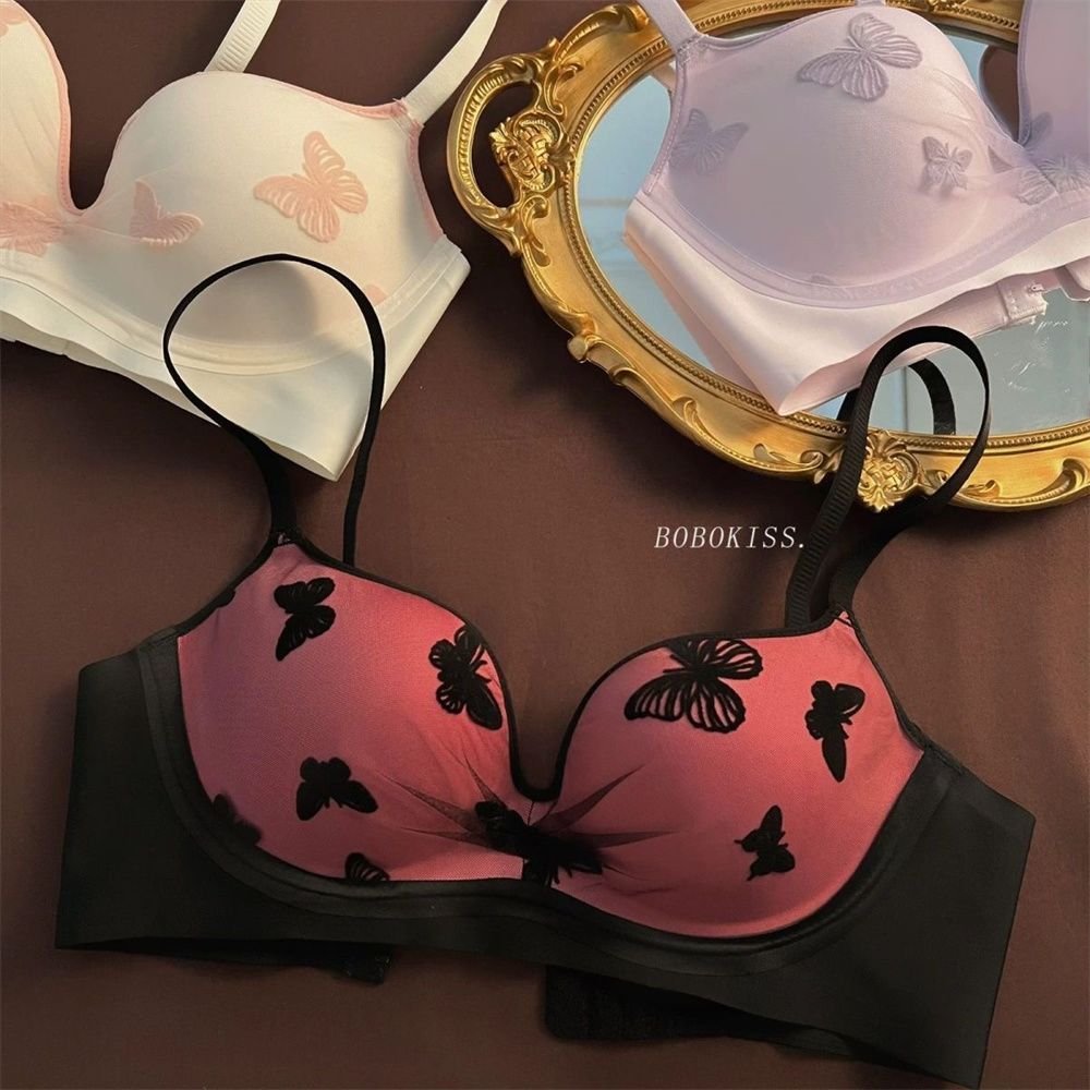 内衣女小胸显大聚拢加厚无钢圈上托收副乳刺绣蕾丝舒适透气文胸罩