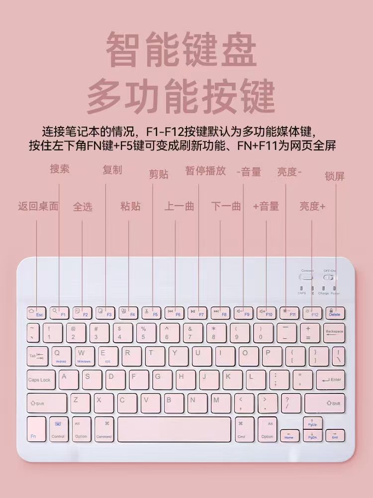 | [light elegant pink free charging cable] wireless bluetooth keyboard (long battery life)(【淡雅粉送充电线】无线蓝牙键盘(长续航)) | USD $5.59 | 999999 piece available |