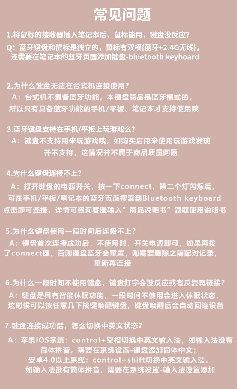 | [pink with charging cable] bluetooth keyboard + dual-mode mouse(【粉色送充电线】蓝牙键盘+双模鼠标) | USD $7.46 | 999999 piece available |