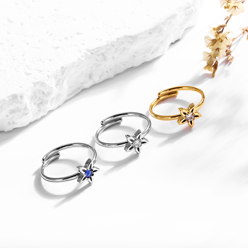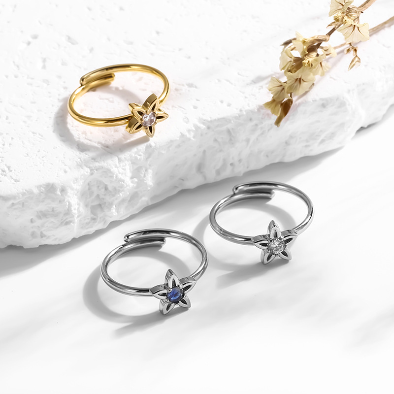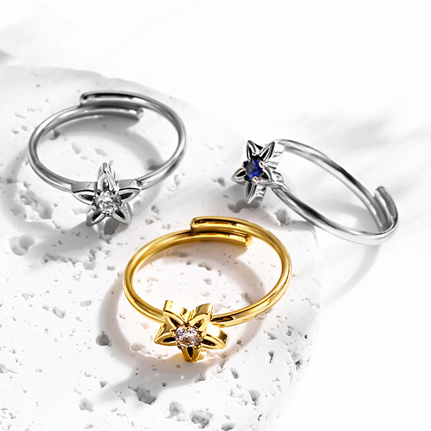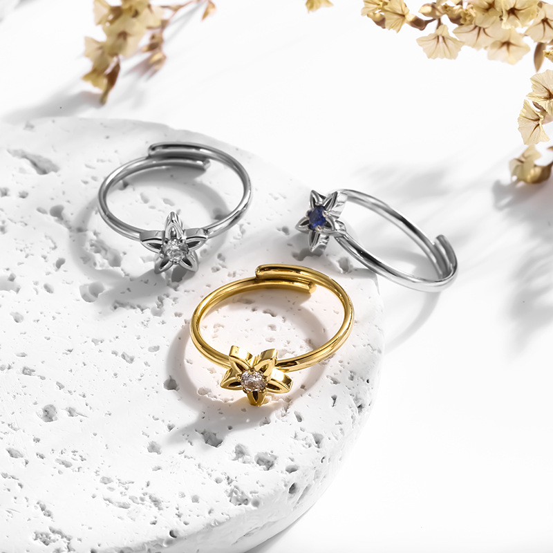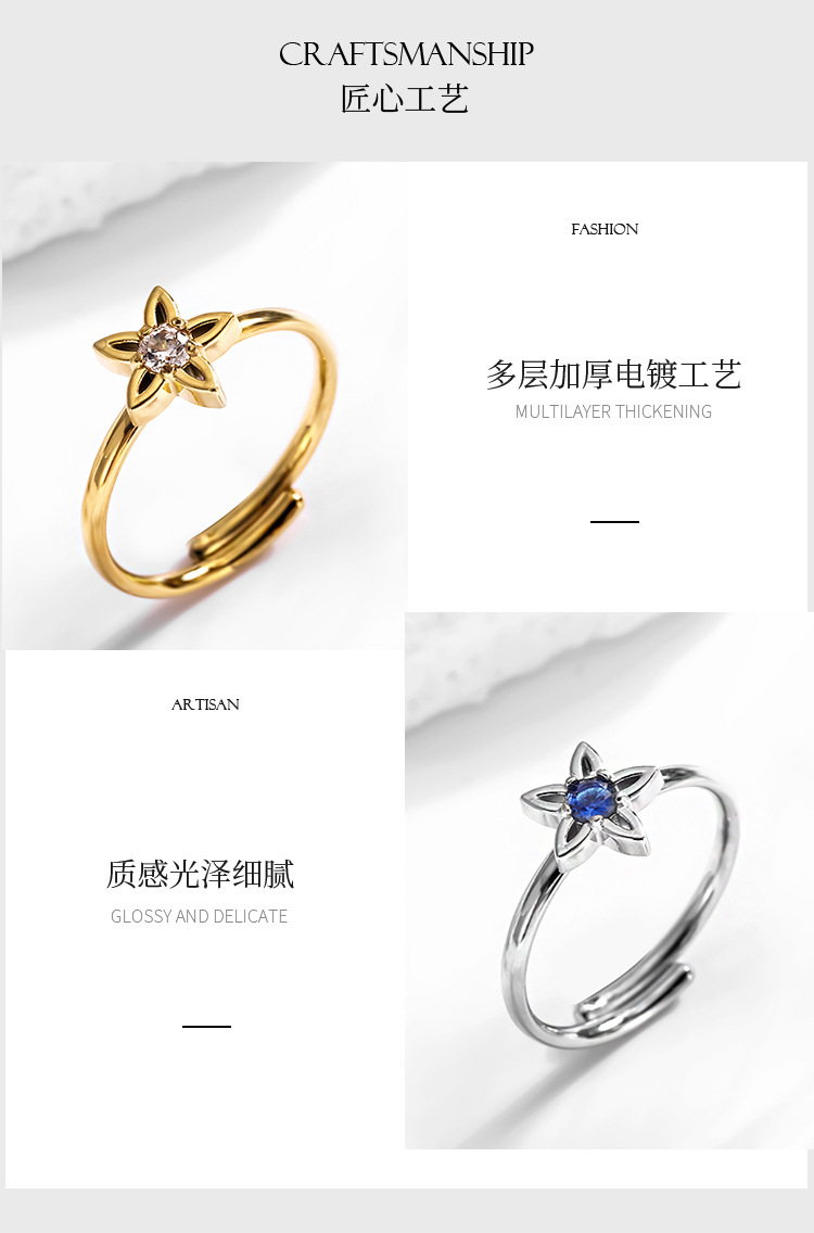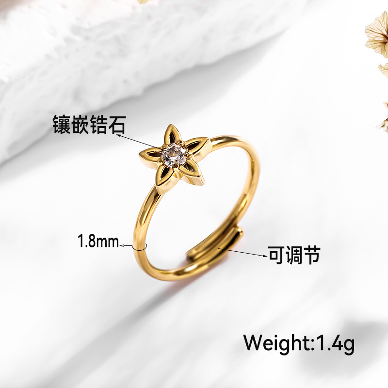 跨境时尚钛钢五角星戒指简约小众百搭电镀18K金色可调节指环手饰